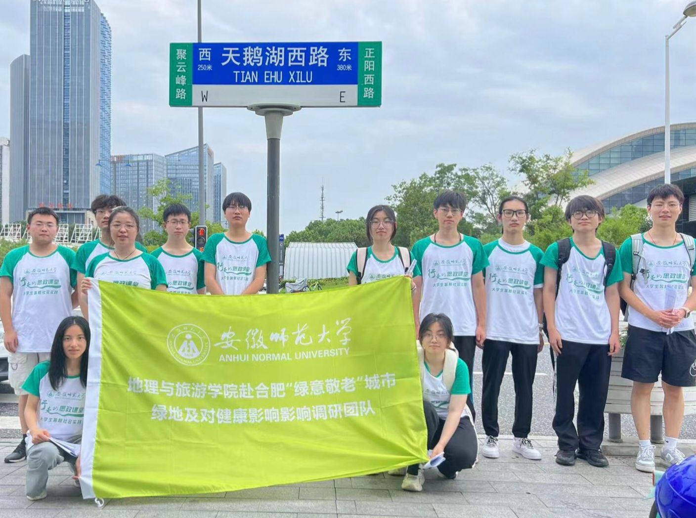 2024年7月15日早晨,我们迎来了团队最后一个调研点位——天鹅湖公园。天鹅湖原名荷叶地,因湖面呈天鹅形状得名。环湖有合肥大剧院、天鹅湖体育馆、安徽省博物馆、合肥市政务双子大楼、安徽新广电中心等安徽省标志性建筑。其服务功能覆盖的面积广阔,环境宜人。队员们以放松的心态,完成了调研工作的最后步骤,并在天鹅湖公园的北门门口拍摄了团队合照,标志着地理旅游公司赴合肥“绿意敬老”城市绿地及对健康影响调研团队工作的圆满结束。期待后期数据统计和分析完成后的调研成果!