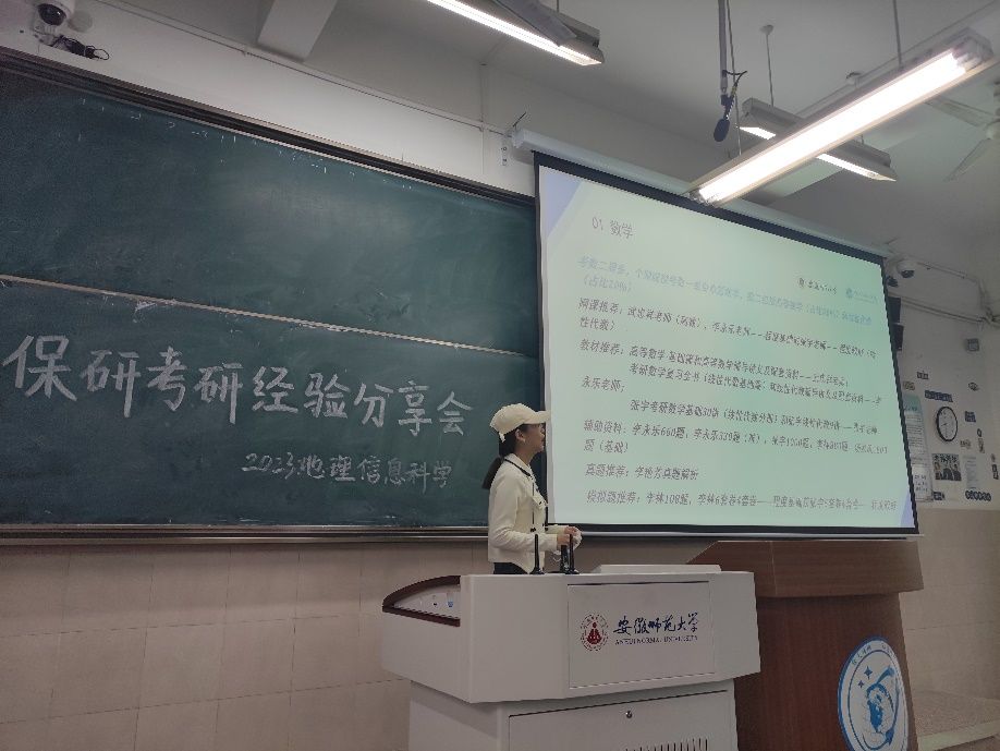 陆逸同学从思想、学业、员工工作和科研四个方面,为班级同学分享了自己成功保研南京师范大学的心路历程。在思想方面,她详细为同学们介绍了入党的基本流程,鼓励同学们积极参与志愿服务,增强社会责任感,向党组织靠拢。在学业方面,陆逸同学分享了自己的学习方法,并结合2023级地理信息科学专业的课程安排,针对期末课程复习提供了具体建议。她强调同学们应该重视专业课程的学习,可以通过制作思维导图等方式提高复习效率,提升学业成绩,为保研打下坚实基础。员工工作方面,陆逸同学鼓励班级同学积极担任班级和公司员工干部的工作,提升自己的社会实践能力。在科研方面,她强调了本科生进实验室的重要性,鼓励同学们多与导师联系,积极参加各类竞赛,为保研增加更多优势条件。
