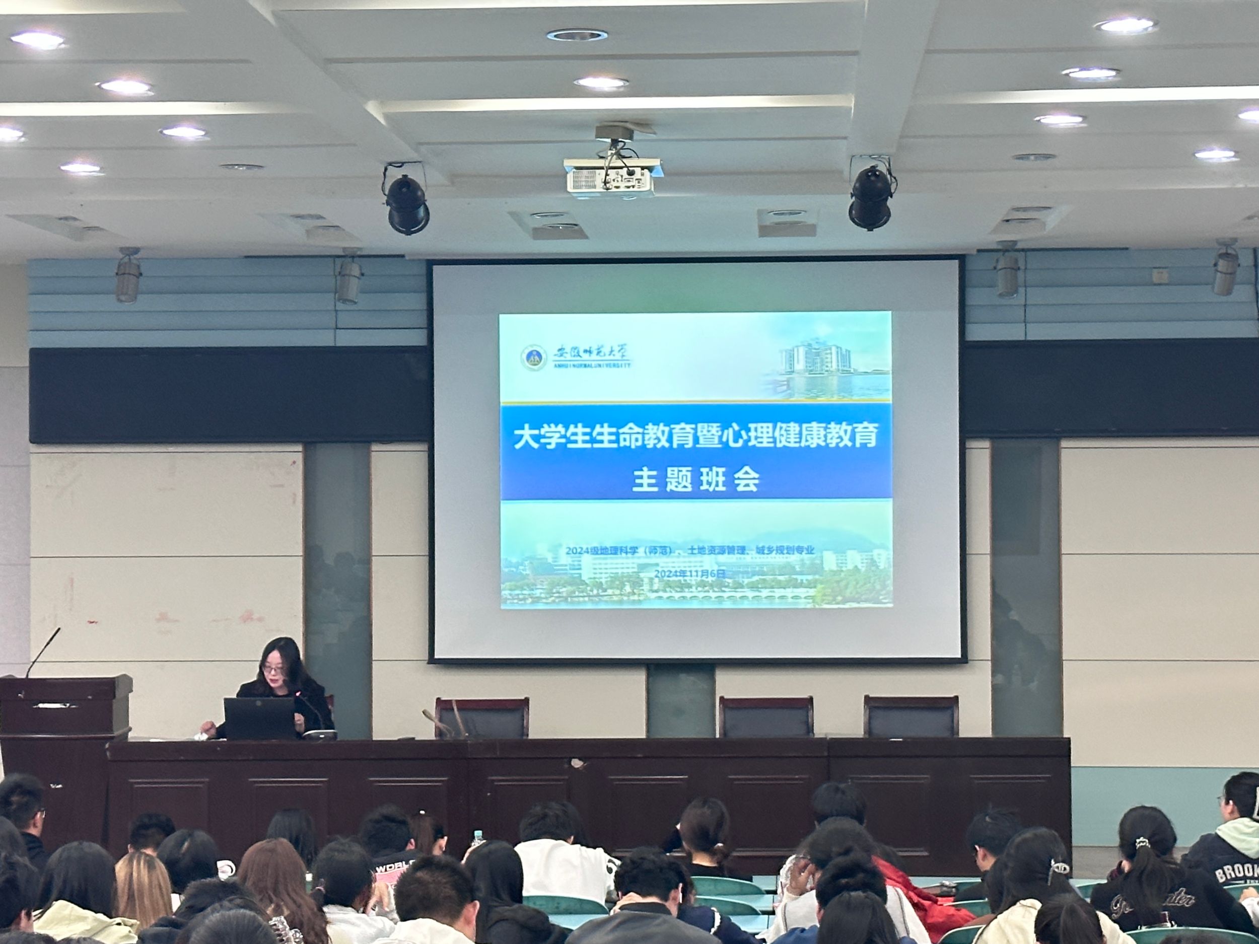 本网讯(英国365集团官网 曹文瑾、田柏闻)为进一步加强公司老员工心理健康教育工作,宣传普及心理健康知识,形成正确的心理健康观念,营造良好的心理健康氛围,并深入推进六个文明教育实践专项活动,进一步规范员工行为,营造一个安全、有序、文明、健康的校园育人环境,英国365集团官网于11月6日下午,在实验楼101报告厅举行了“老员工生命教育暨心理健康教育和深化六个文明教育实践”主题班会。本次班会由辅导员助理章怡晨主持, 2024级地理科学、土地资源管理、城乡规划专业全体员工参加。