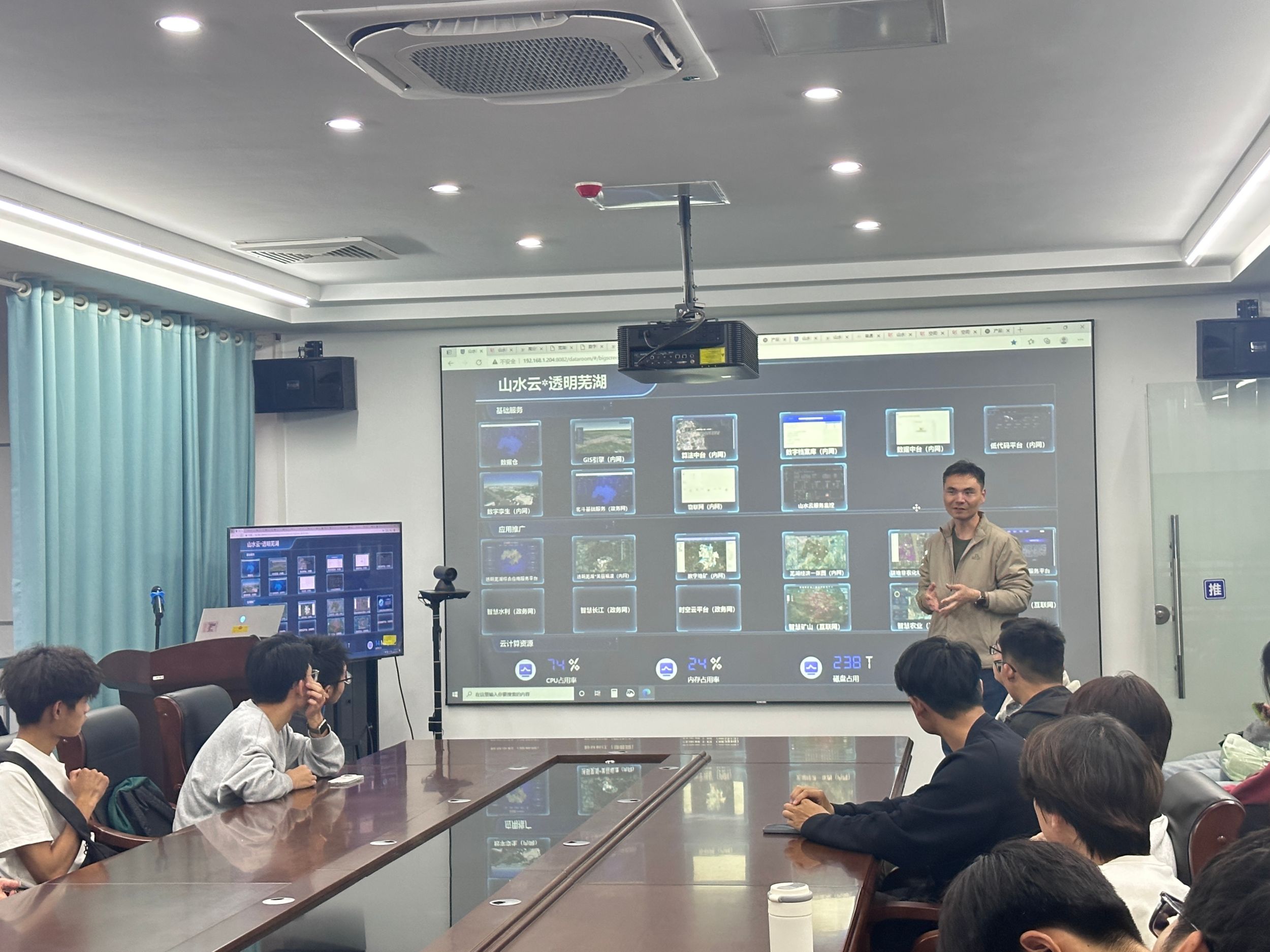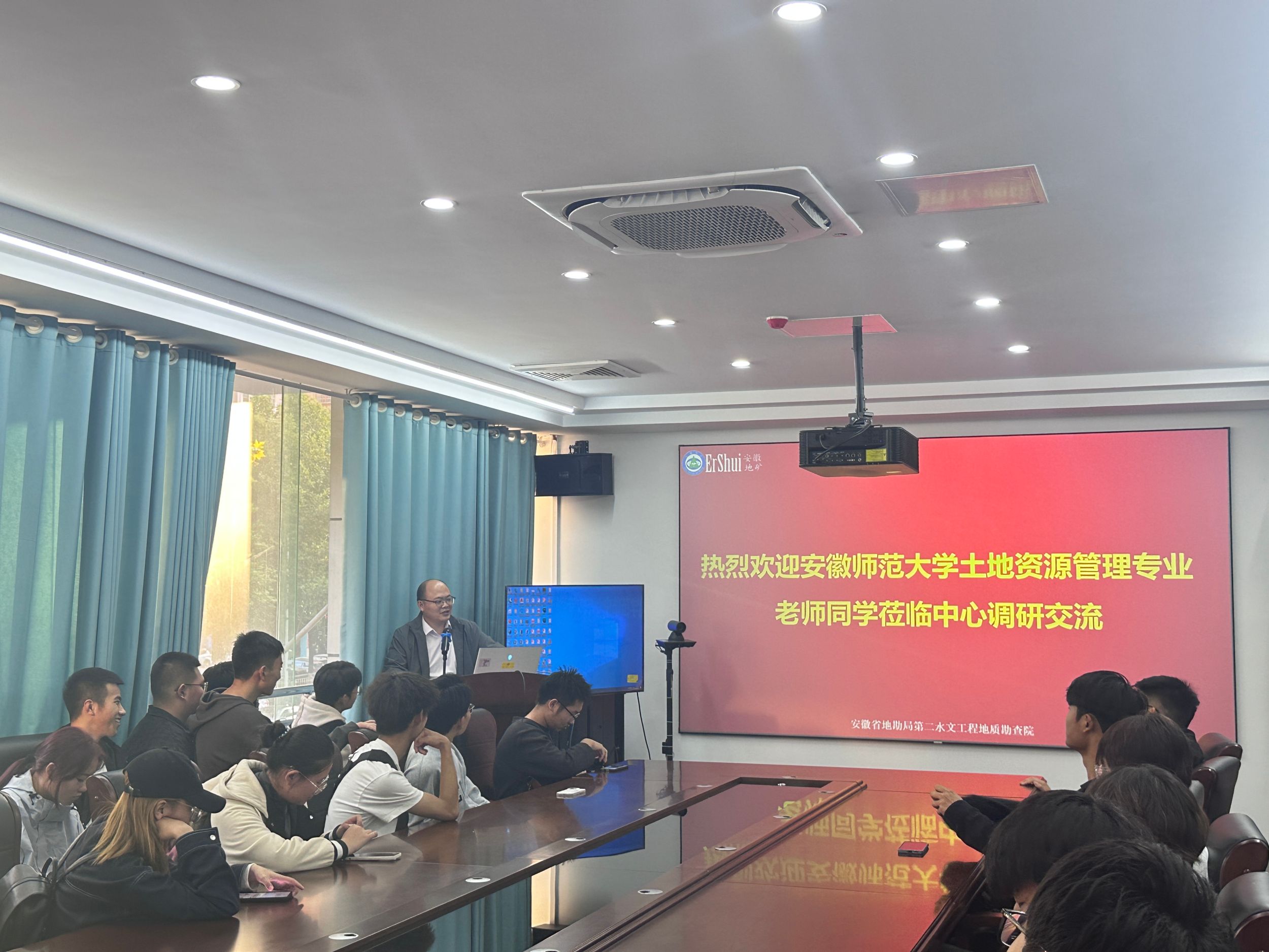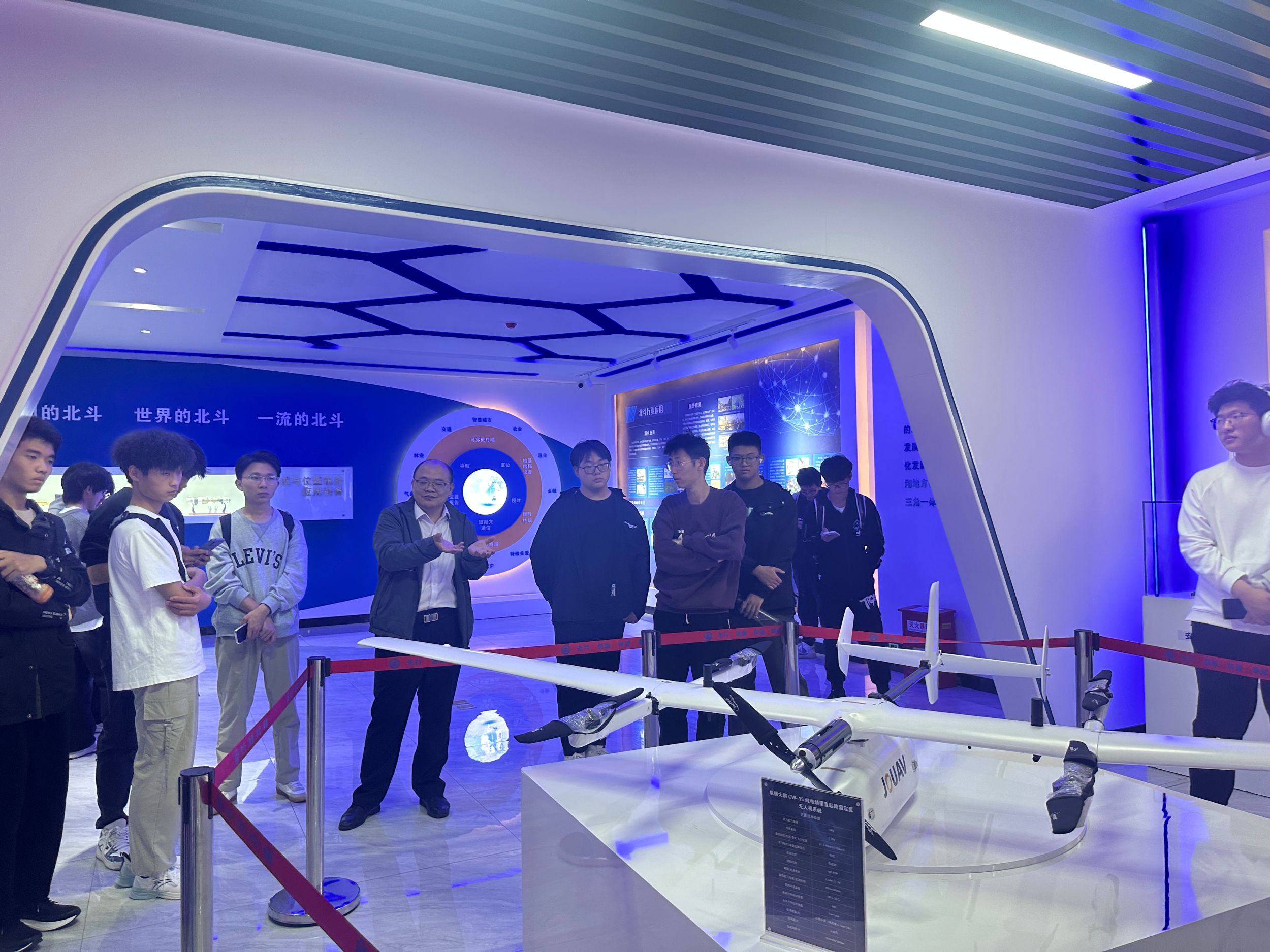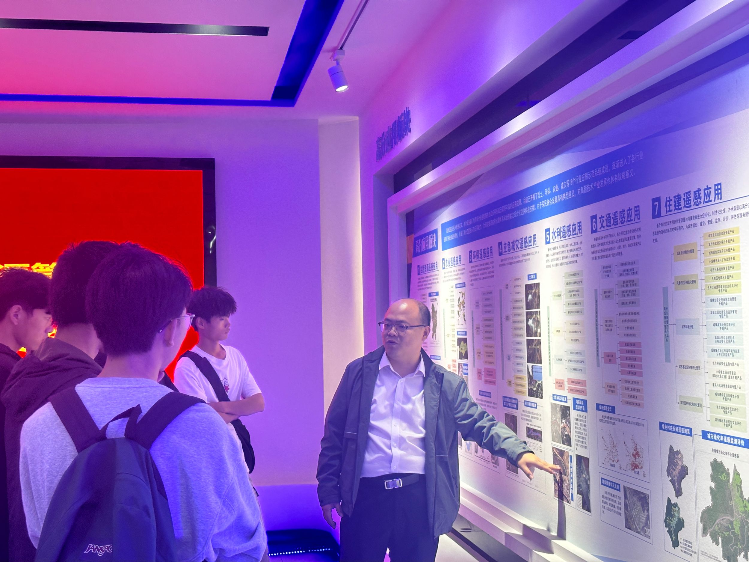 随后,同学们前往高分芜湖中心(芜湖市空间信息与卫星应用中心)进行参观。在这里,他们首先参观了中心的一楼展厅,近距离接触了高分系列卫星的珍贵影像资料,聆听了关于卫星遥感技术在自然资源管理、城市规划、环境监测等领域应用的详细介绍。接着,中心负责人为同学们开展了一场专业认知讲座,他先简单介绍了中心主要工作,再深入剖析了高分技术在土地资源管理中的具体应用,展示了芜湖市在土地资源动态监测、土地利用规划等方面的科技实力与成果。讲座结束后,同学们还与中心工作人员进行了深入的交流。