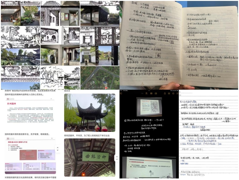 在接下来的几天里,同学们参观了拙政园、狮子林、留园等苏州古典园林。在拙政园,谢泓权教授带领同学们从专业知识角度赏析拙政园的空间组合、观赏流线,感受起承转合、曲径通幽的空间景观联系,领悟框景、漏景、借景等不同造景手法体现的景观效果,把课堂移至园林,让书上的知识变得立体、清晰。此外,同学们还游览了山塘街、平江路等,了解了水系布局与城市空间结构的关系,古城门建设的功能等,从专业视角思考了苏州古城的保护与更新机制,深入了解了城市空间的整体规划与布局。