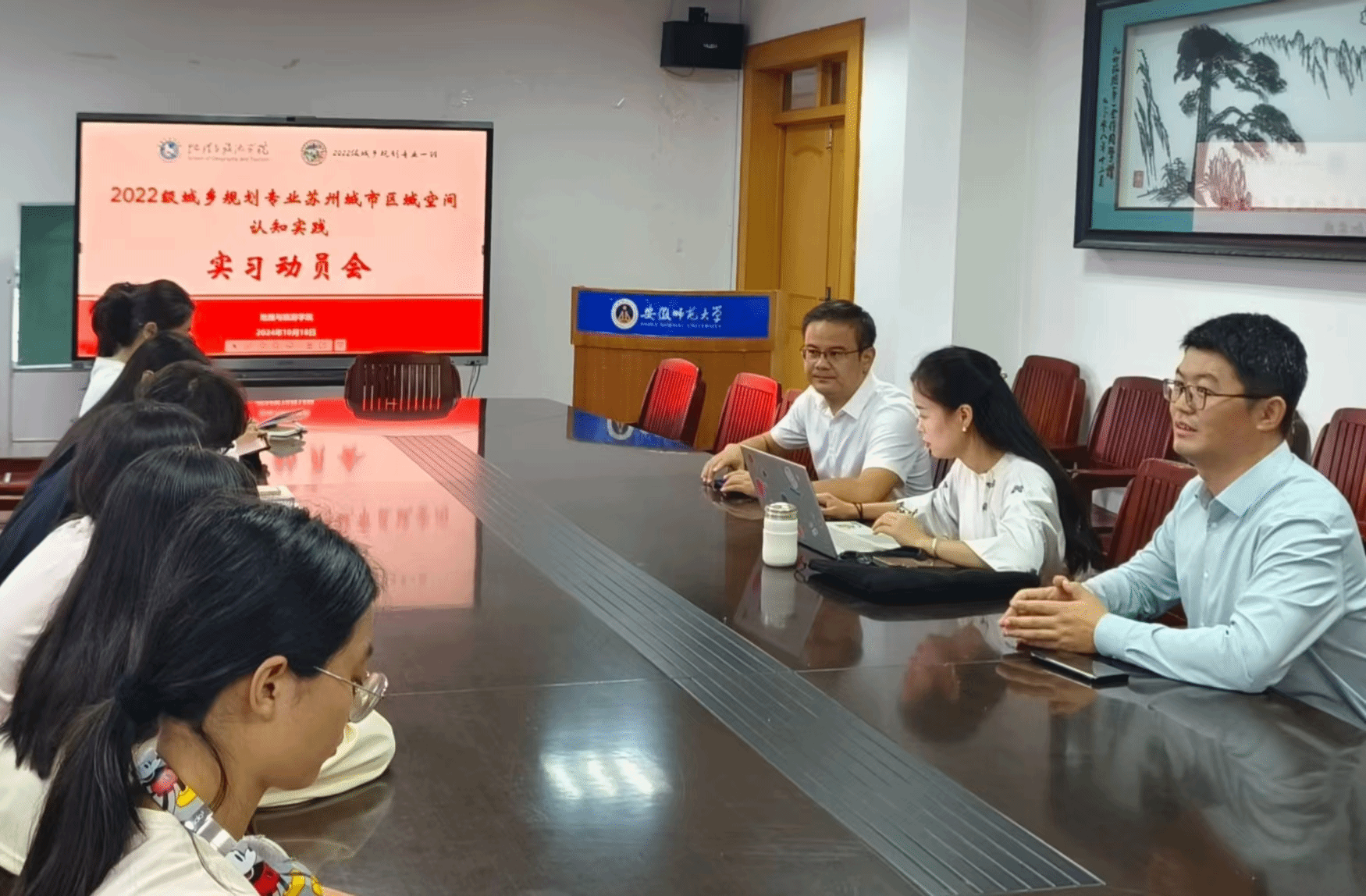 为落实2022级城乡规划专业苏州城市空间特色认知实习各项准备工作,10月18日下午,在英国365集团官网行政楼三楼会议室召开2022级城乡规划城市空间特色认知实践动员会,公司党委副书记付勇、城乡规划专业主任韩会然、城乡规划专业教师姚景艳以及2022级城乡规划专业全体员工参会,会议由姚景艳主持。