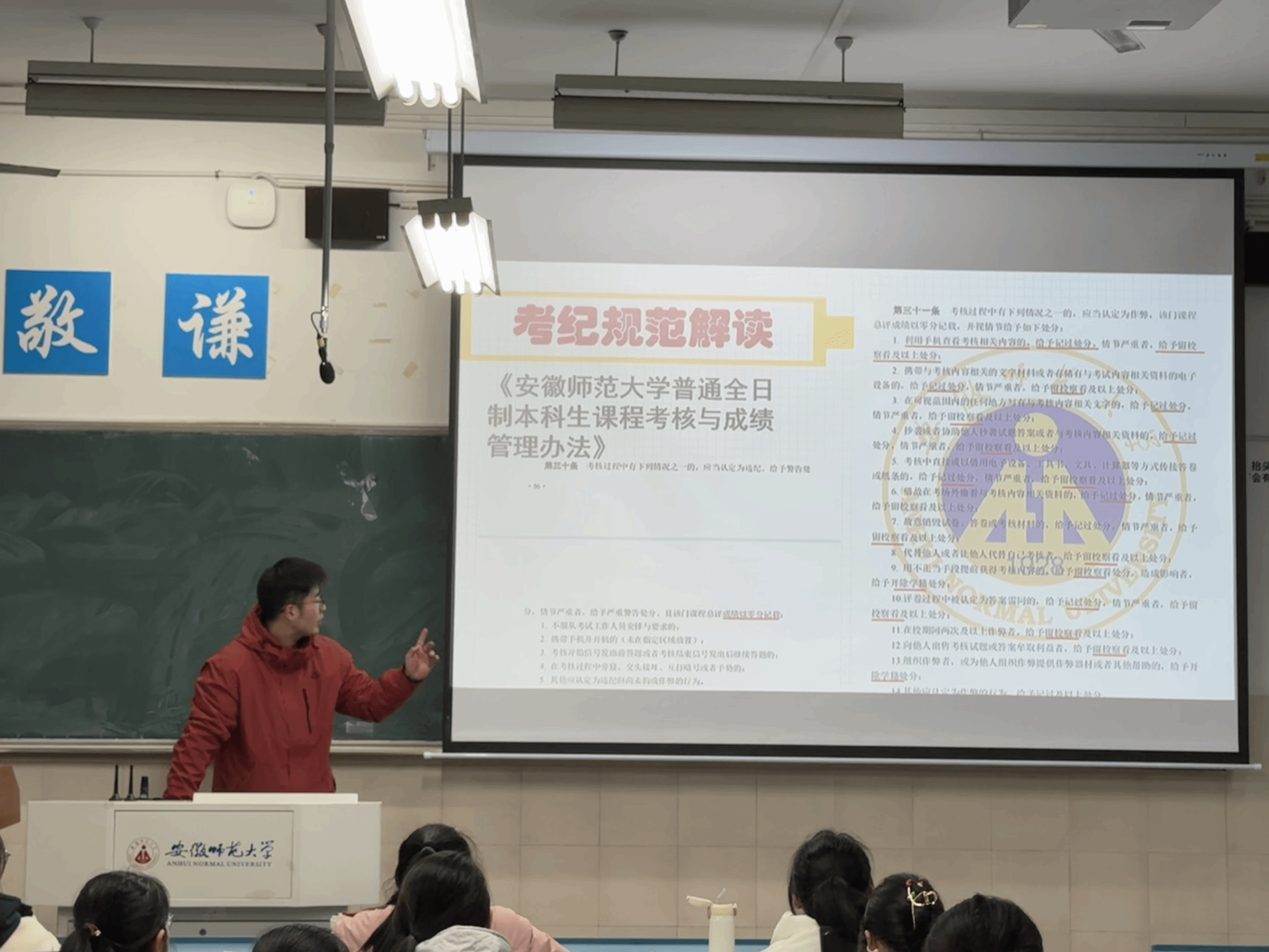 接下来,针对即将到来的英语四级考试,沈涵分享了考试注意事项,包括时间管理、答题技巧、证件准备等,提醒同学们认真备考,提前规划。在班会尾声,沈涵鼓励同学们放平心态,合理安排复习时间,以扎实的知识储备和良好的心理状态迎接考试,避免过度压力影响发挥。此次班会为同学们敲响了诚信考试的警钟,为营造积极向上、公正有序的学习环境奠定了坚实基础。