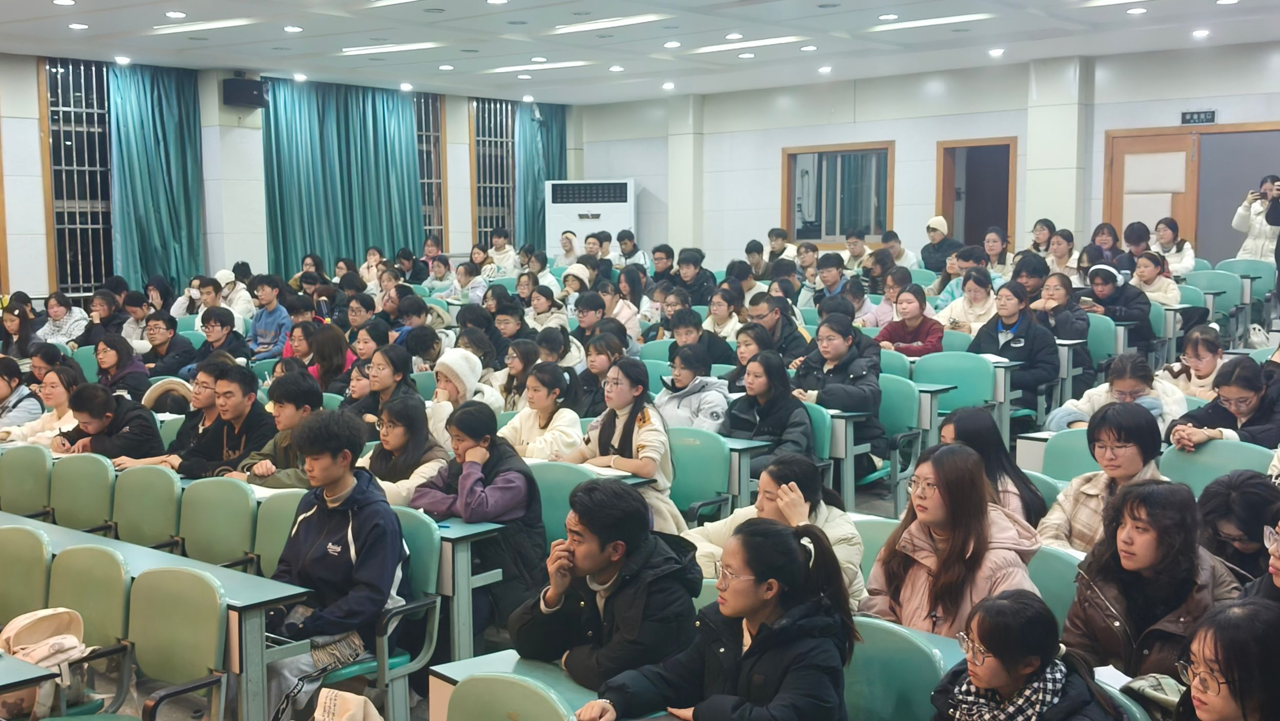 在会上,章怡晨首先引导同学们了解各种职业测评工具,鼓励大家通过科学的方法认识自己,为未来职业生涯规划提供参考。接着,她详细阐述了毕业后可能面临的不同发展路径,帮助同学们预见未来可能遇到的挑战,以便提前做好准备,明确目标。
