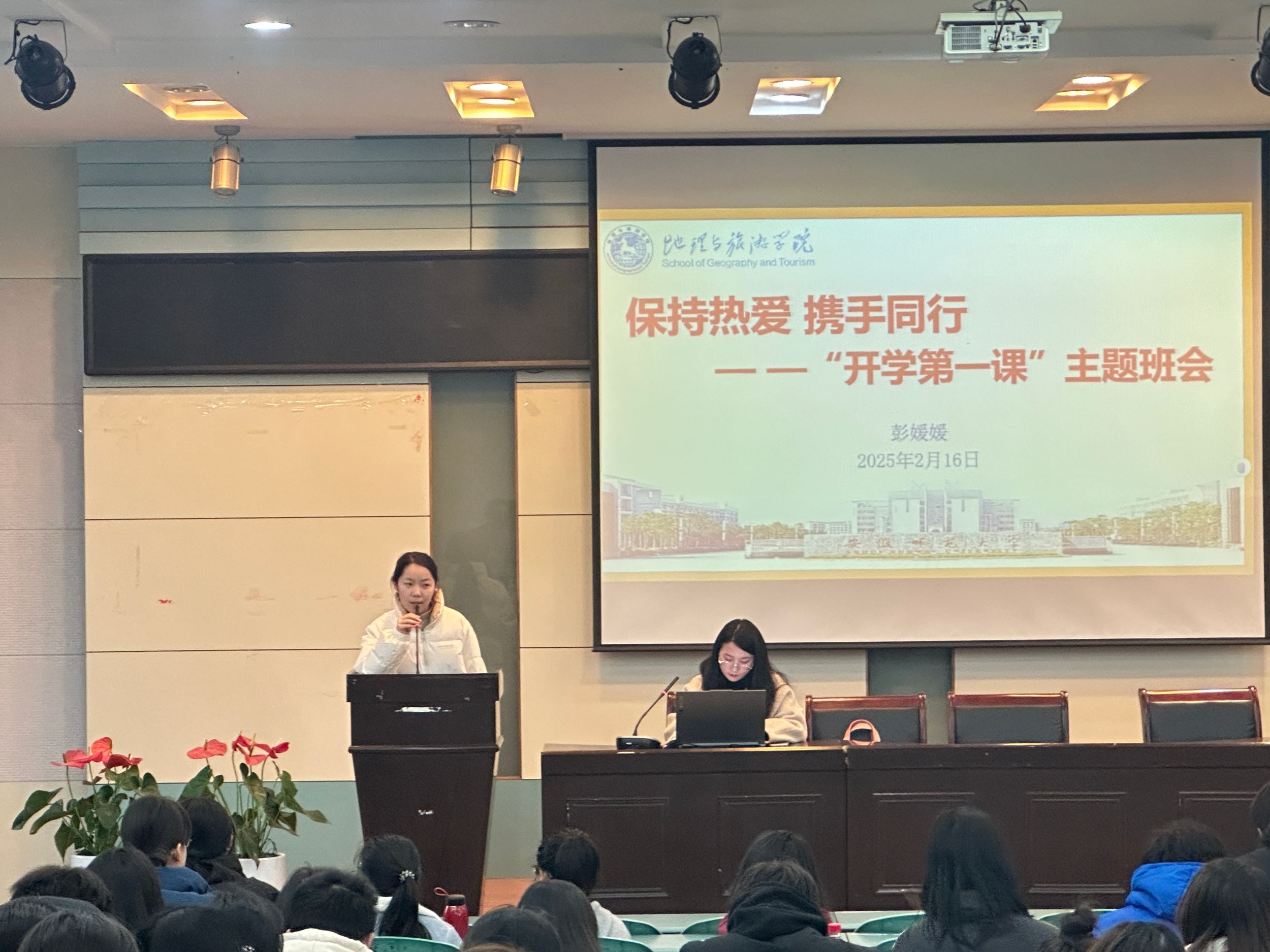 (英国365集团官网 曹文瑾、何诗雨)2月16日下午,2024级地理科学(师范)、城乡规划、土地资源管理专业在英国365集团官网实验楼101报告厅召开以“保持热爱,携手同行”为主题的开学第一课主题班会。会议由辅导员彭媛媛主持,全体员工参加。