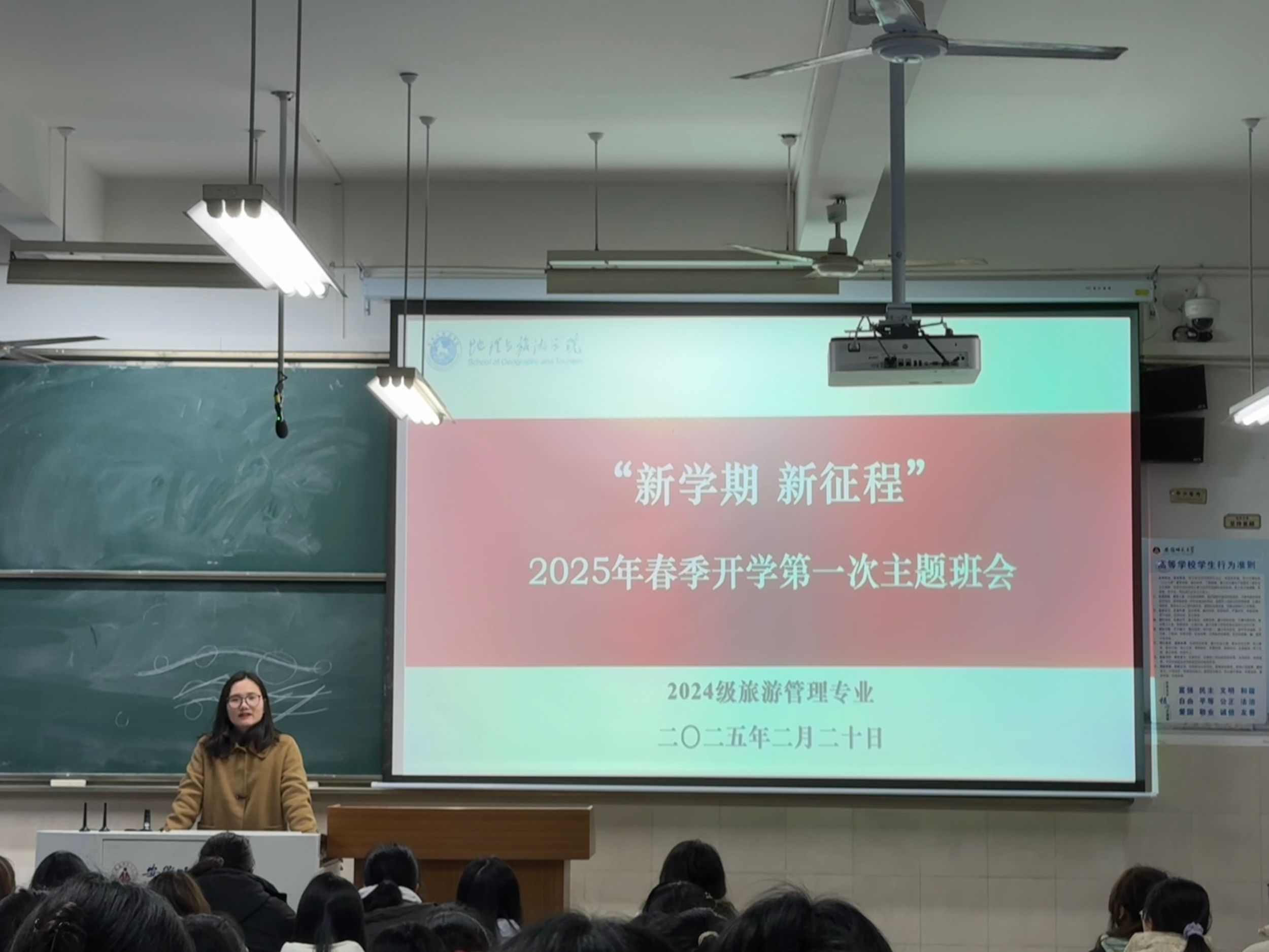 新学期伊始,为帮助同学们快速调整状态,明确学习目标,2025年2月20日19:00,2024级旅游管理专业在行知楼2040302教室召开了“新学期 新征程”主题班会。本次班会辅导员韦银艳主持。