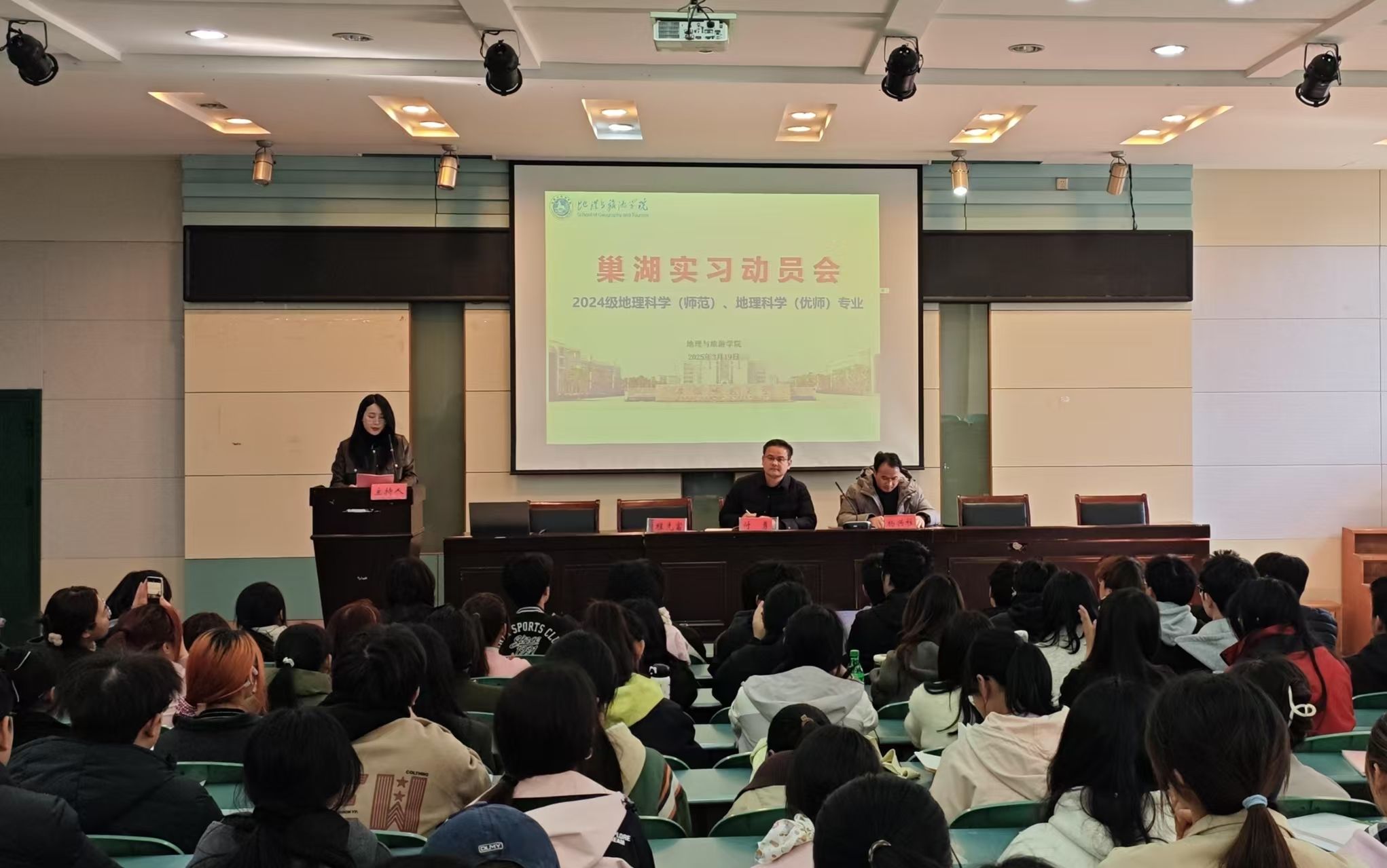 野外实习是获取第一手科学资料的重要途径,对地理专业的学习有着特殊意义。通过此次实习动员会,同学们详细掌握了实习过程中的注意事项以及巢湖的地质概况,增强了对此次实习的期待和信心。