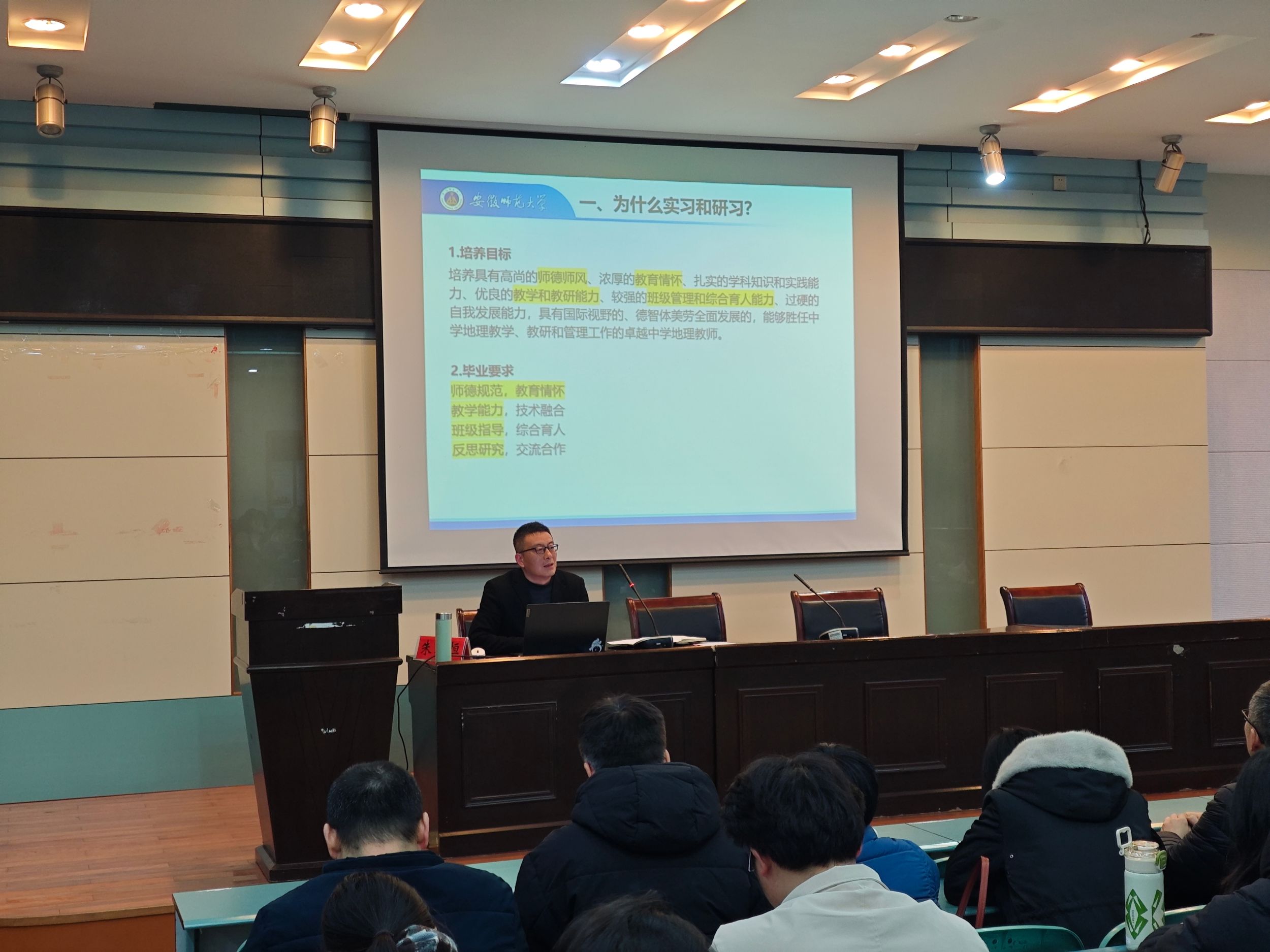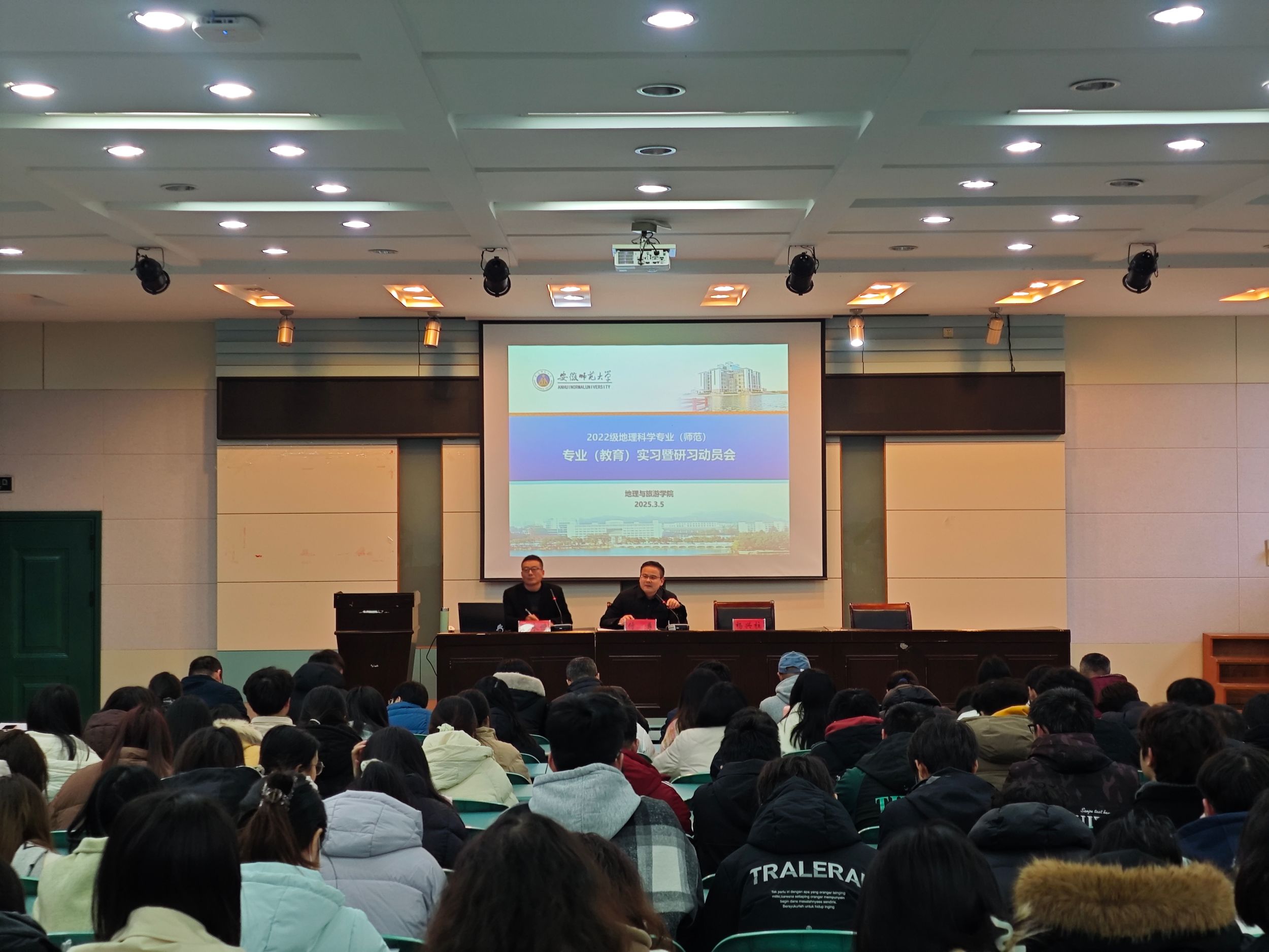 2025年3月5日,2022级地理科学(师范)专业在英国365集团官网实验楼101报告厅召开教育实习动员大会。会议由地理科学专业负责人朱永恒主持,公司党委副书记付勇、教育实习全体指导老师、辅导员及2022级地理科学(师范)专业全体员工参加会议。