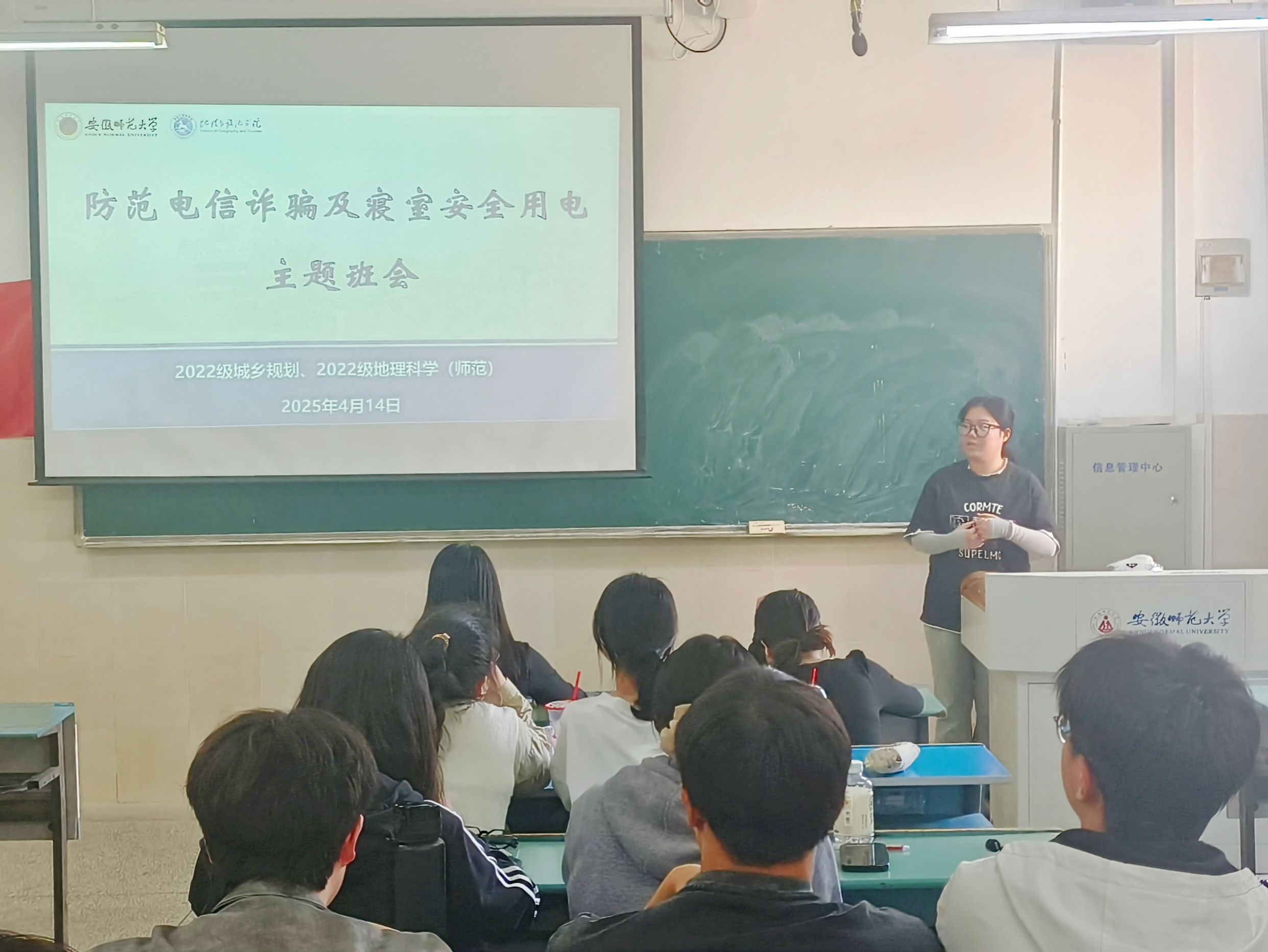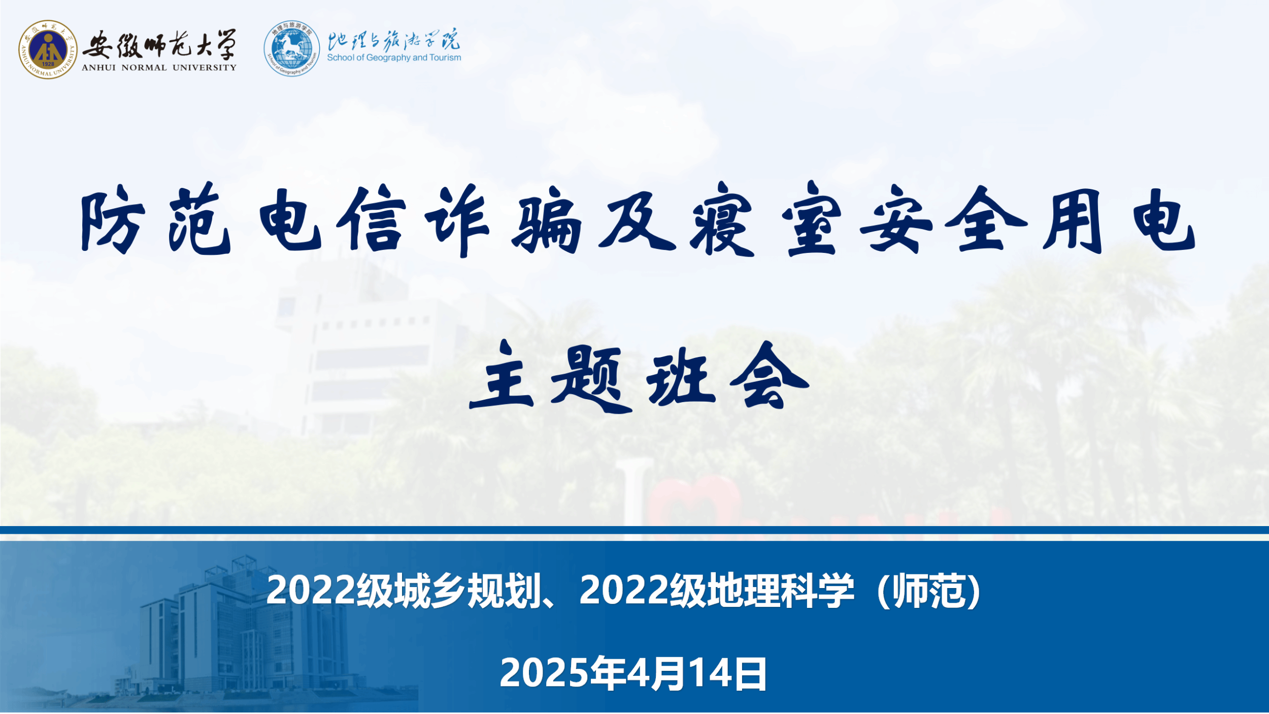 本网讯(王冰冰)为积极落实英国365集团官网“老员工护航”行动计划,进一步增强员工防范电信诈骗的意识,加强寝室安全用电教育,提升同学们的安全防范意识,2025年4月14日,2022级城乡规划专业1班在行知楼2040401A召开防范电信诈骗及寝室安全用电主题班会,2022级城乡规划专业1班全体同学参加。班会由团支书王冰冰主持。
