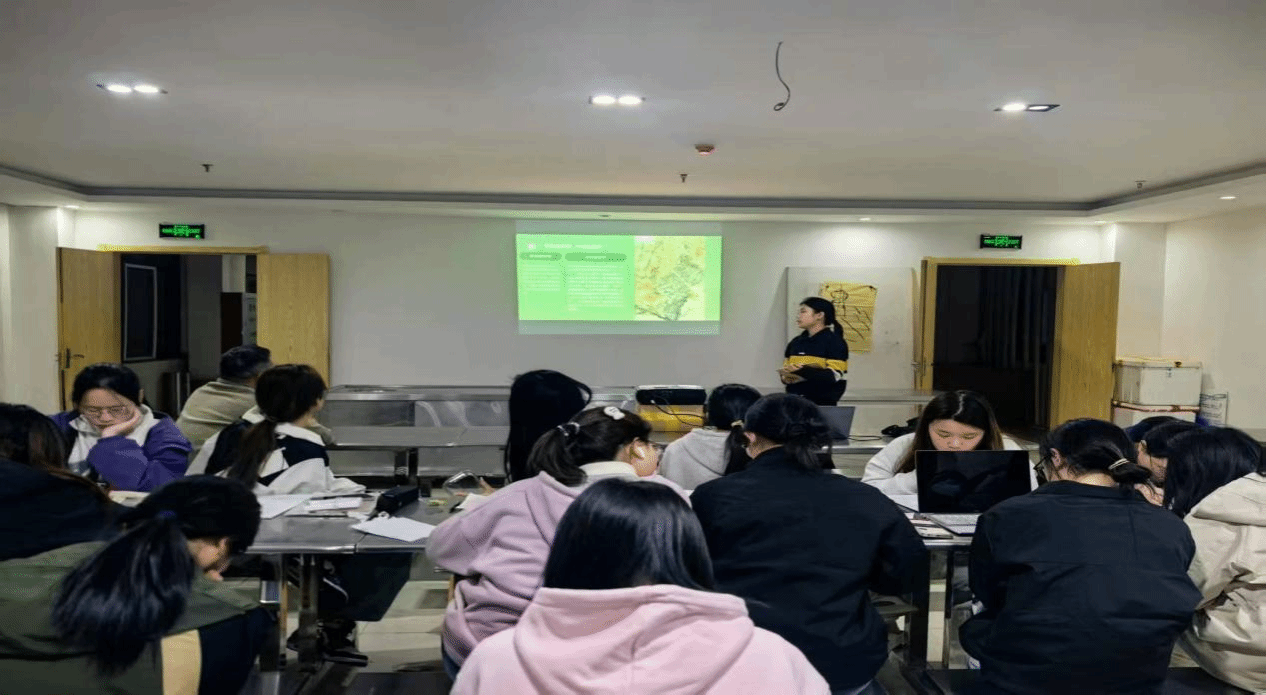 在巢湖野外实习的最后,各个小组团结协作、共同努力,爬上山坡,带上罗盘测绳,进行柴禾山实测剖面图的测量与绘制。同时,各组代表进行了专题汇报,展示了这七天来同学们的学习成果。