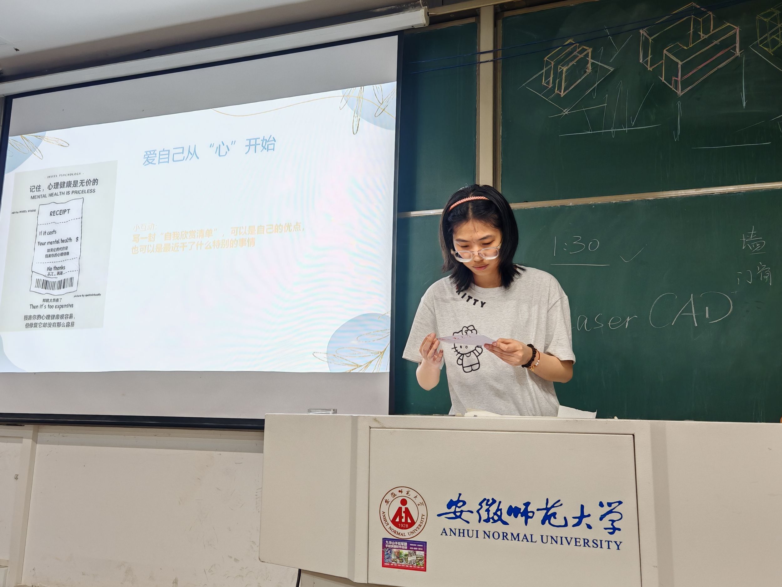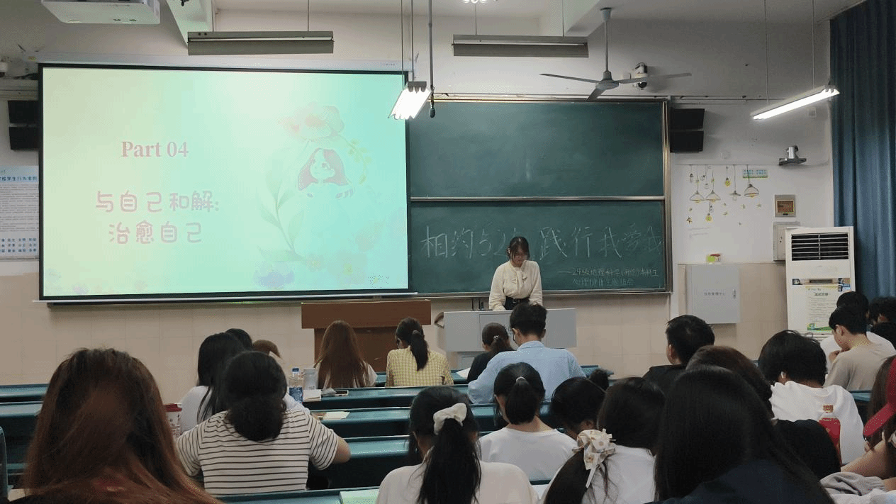 地理科学(师范)专业1班通过程凡琦同学深入浅出的讲解,让同学们了解了心理健康的重要性,并学习了如何面对常见的心理问题。同时强调了爱自己是关爱他人的基础,倡导大家积极践行健康的生活方式。