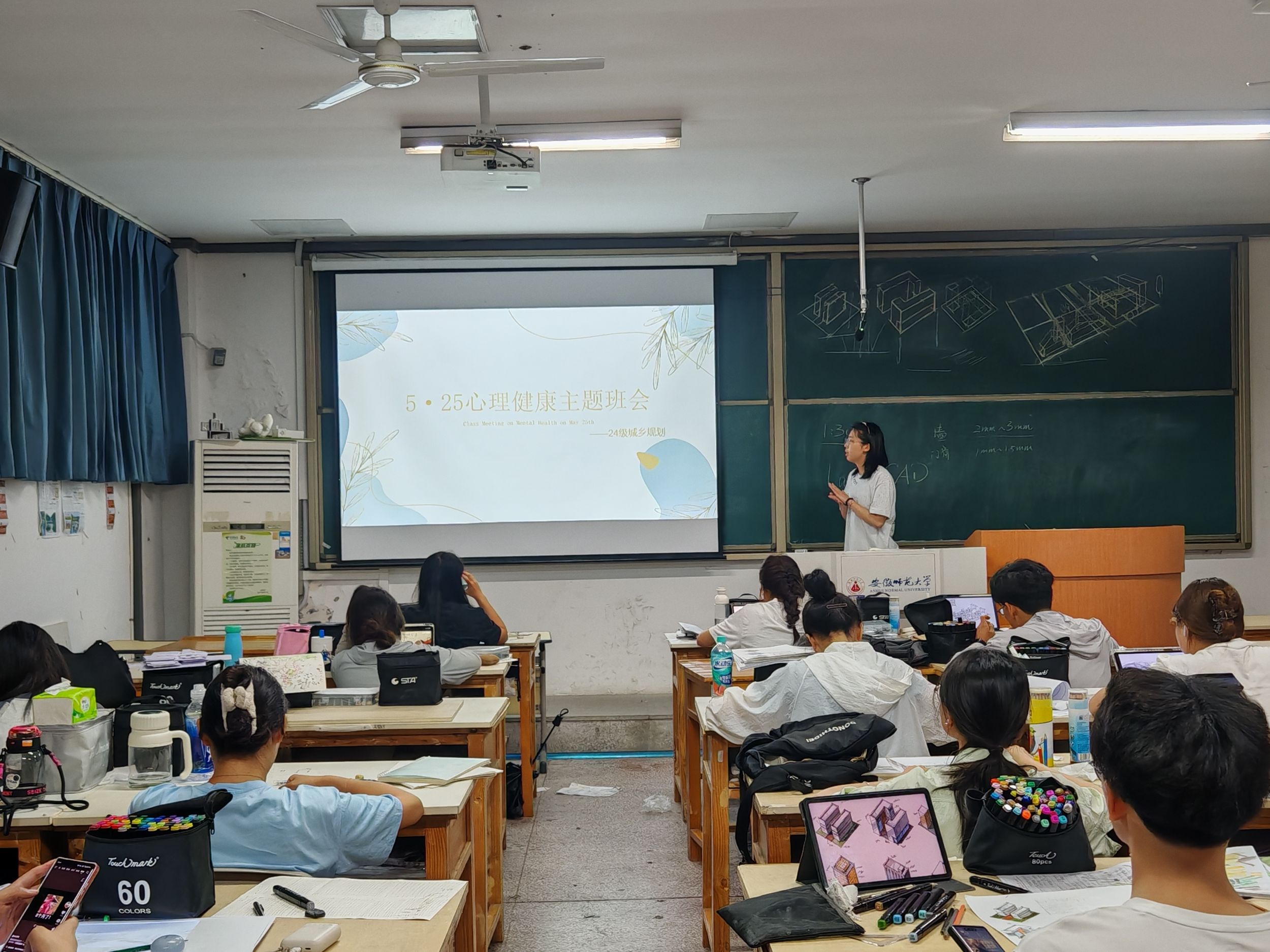 而地理科学(师范)专业2班刘佳宁同学组织的班会,则通过生动的案例分享和实际操作如“心灵放松操”,引导同学们关注心理健康,学习应对压力的方法。现场气氛热烈且温馨,为同学们提供了一个释放压力、交流内心想法的平台。