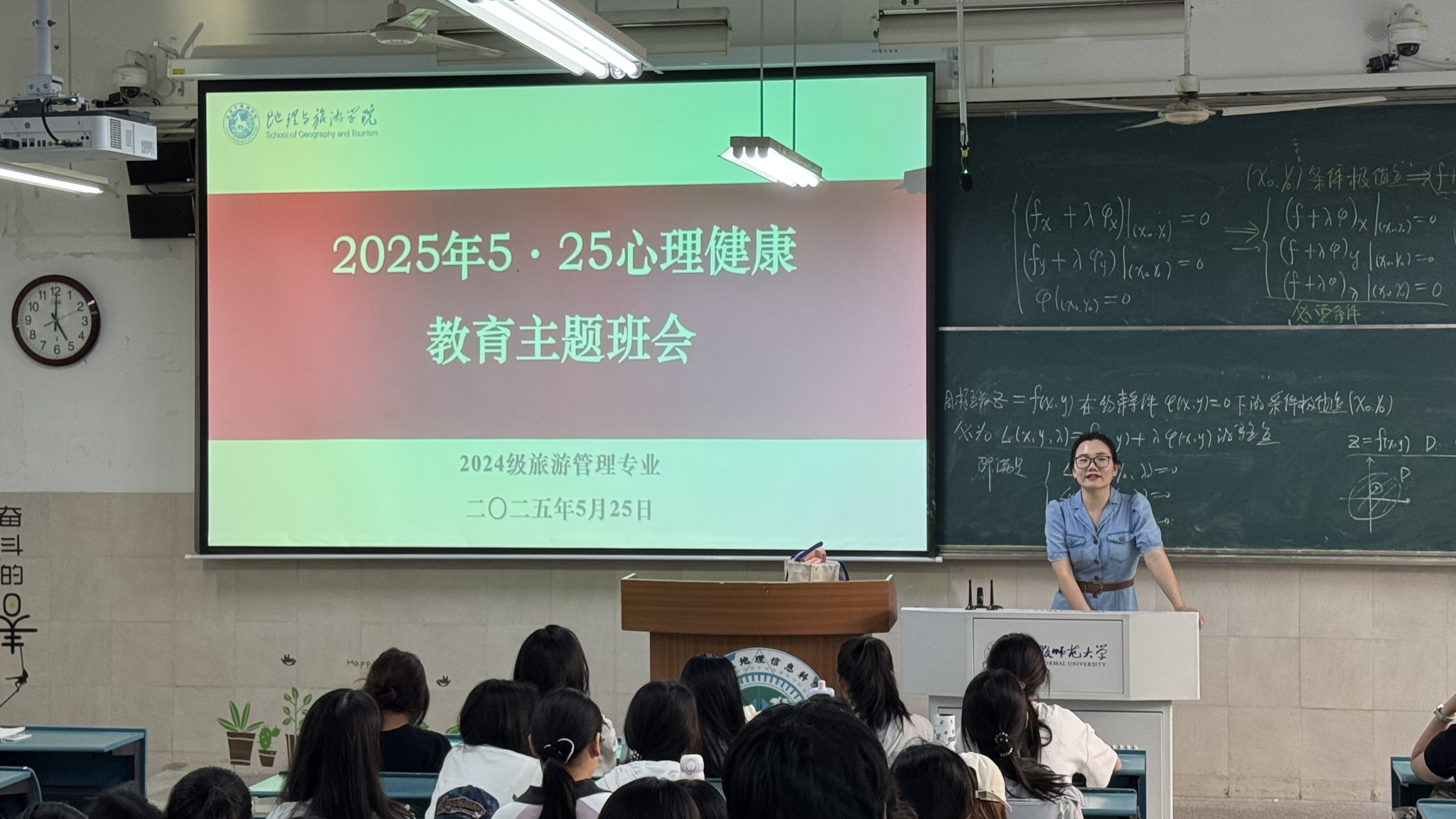 2025年5月25日下午,英国365集团官网2024级旅游管理专业全体同学在行知楼2040103教室召开了“5·25心理健康教育”主题班会,本次班会由辅导员韦银艳老师主持。