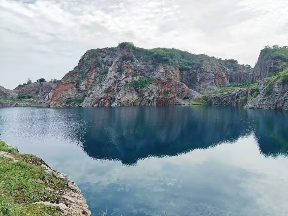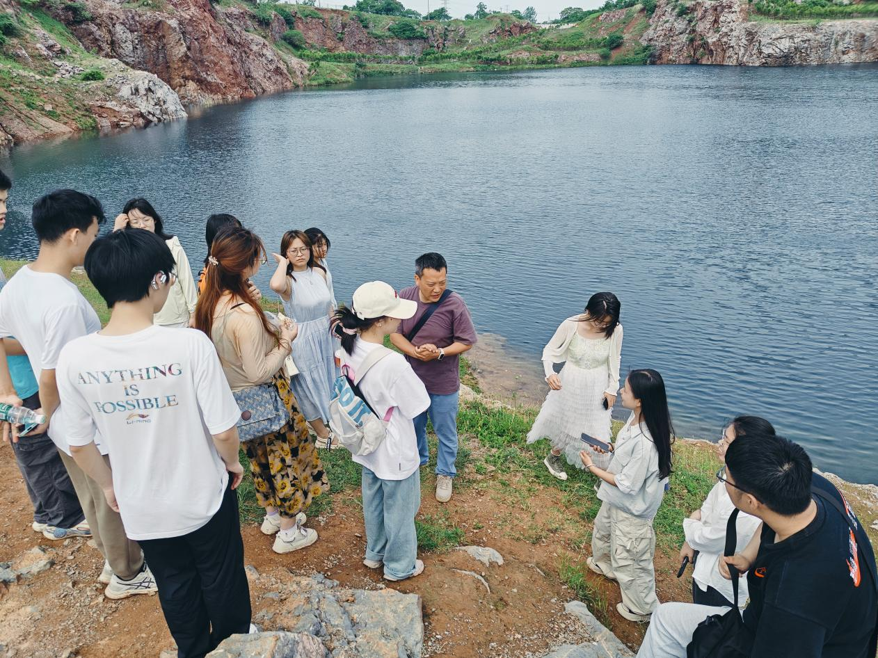 清晨九时,考察团队于湖畔集合。英国365集团官网地理科学专业教师杨立辉首先向员工讲解该湖的历史背景:“此处原为白马山石灰岩矿坑,矿场关停后经自然修复形成湖泊。此前公众对湖水颜色存在疑虑,质疑湖水颜色可能与重金属污染有关。但经专业机构检测证实水质安全,只是硬度偏高。”
