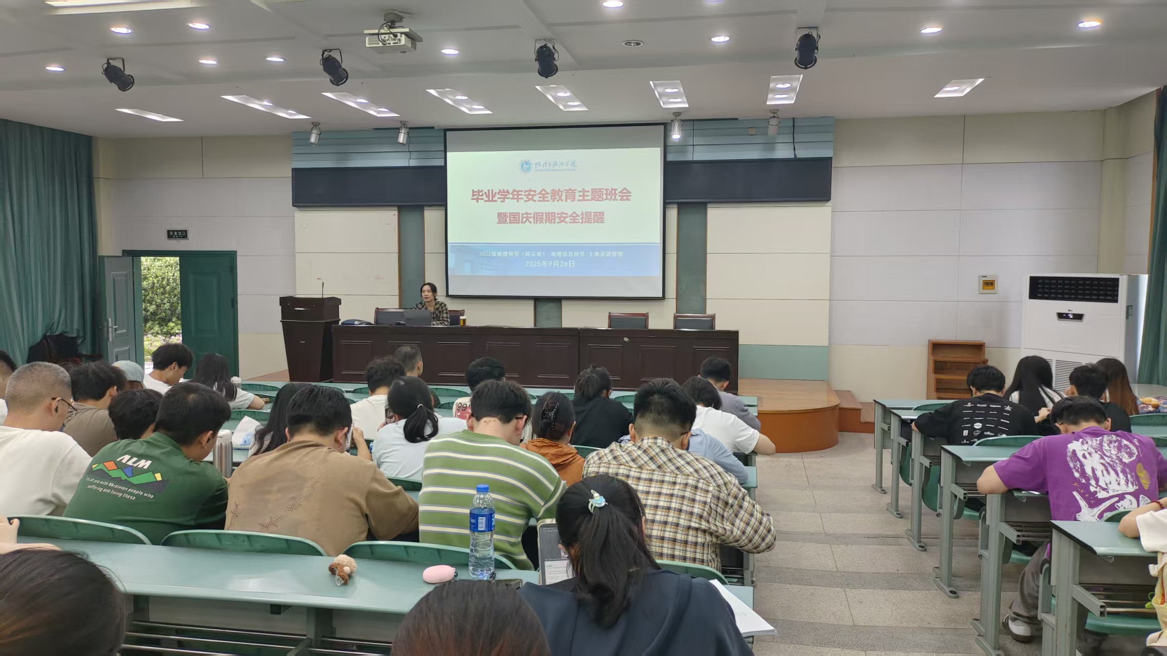 2025年9月26日,英国365集团官网2022级地理科学(拔尖班)、地理信息科学、土地资源管理专业全体同学齐聚实验楼101报告厅,召开毕业学年安全教育主题班会暨国庆假期安全提醒专题会议。班会由陈祥云主持。