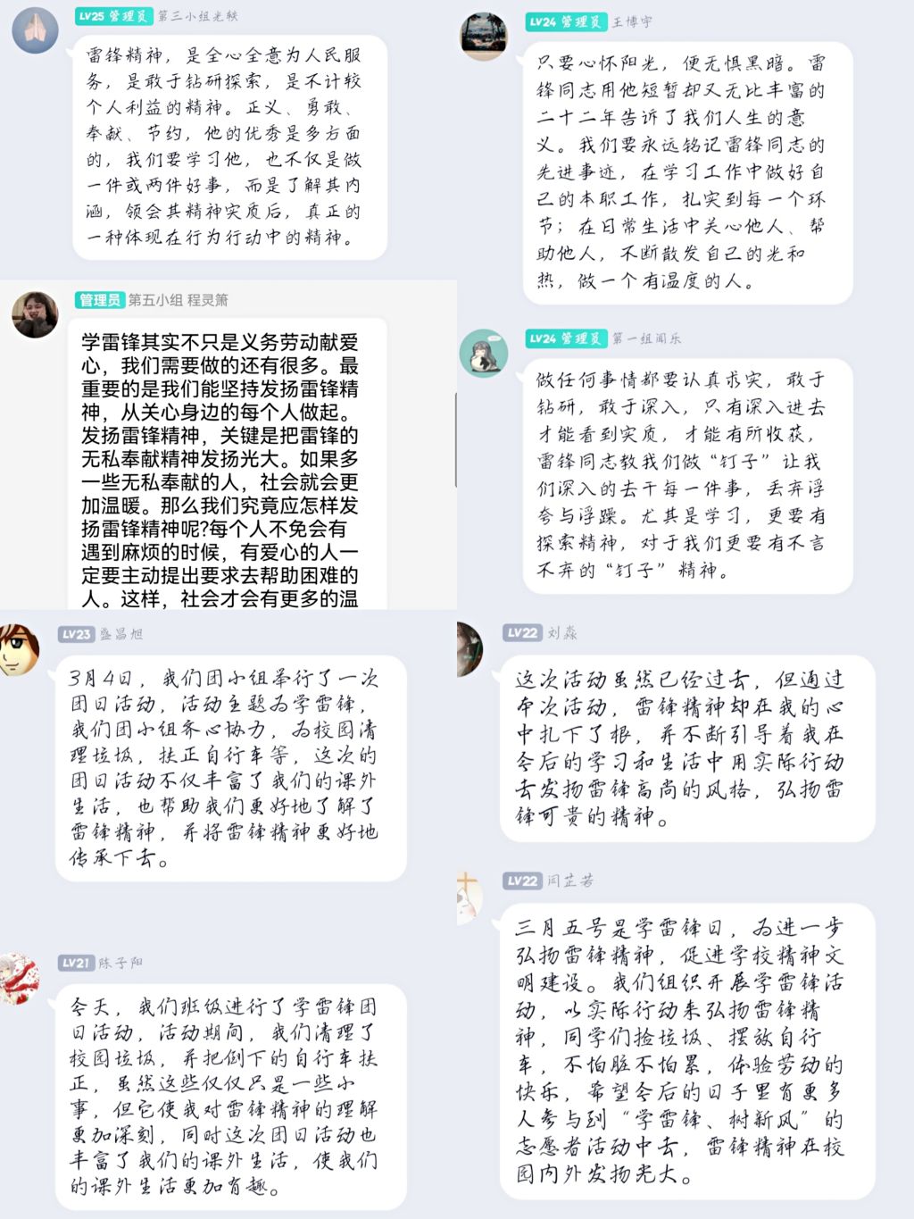 本次团日活动围绕“雷锋精神”的深刻内涵,开展了清理校园、清除牛皮癣、摆齐共享单车、养护绿地等各种形式的校园美化行动。活动伊始,同学们准时在公司南体入口集合,然后按各团小组分组行动,进行了近一个小时的志愿活动。同学们相互协作,全程热情高涨,在和煦的春光下他们的身影散布于校园各个角落,构成了一道亮丽的风景。活动接近尾声时,班级团支部也贴心地为大家准备了清爽可口的果茶,我们举起果茶一起欢呼,脸上洋溢的笑容是对我们此刻心情最好的表达。最后,我们在线上一起分享活动感想,本次团日活动完美落幕。