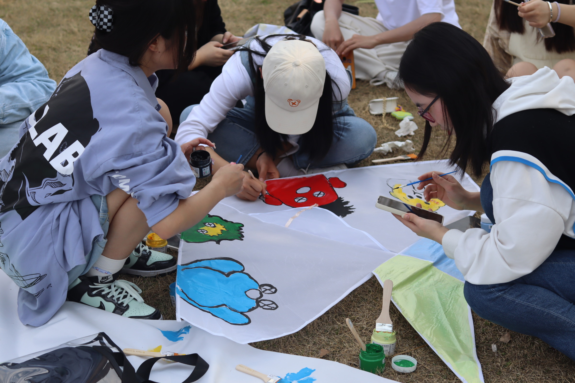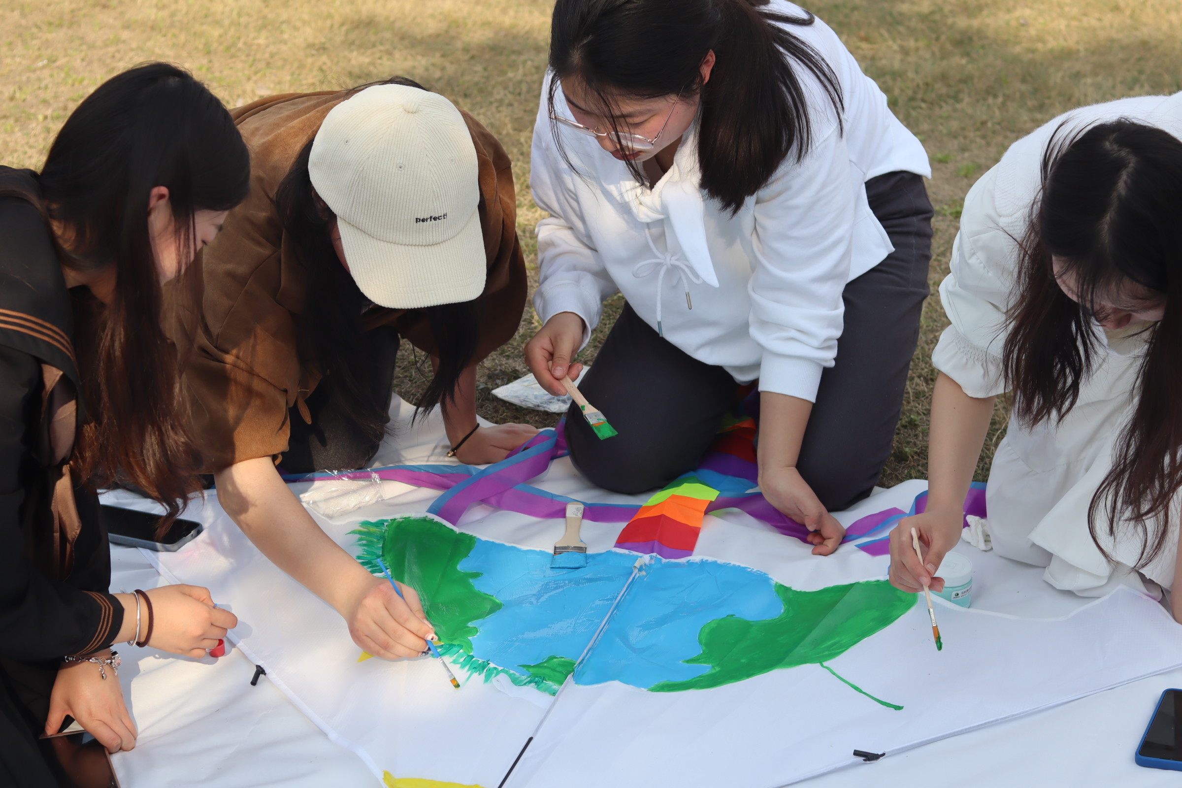 春和景明,微风拂面,正是放飞风筝的好时节。本次团日活动中,同学们围绕“绿色环保”在风筝上手绘涂鸦,一方面响应了植树节所提倡的绿化家园,另一方面许下了对美丽中国建设的美好心愿。冰墩墩、雪容融、地球……大家用五颜六色的画笔在风筝上勾勒出一个个生动的图案,涂上绚烂的色彩。随着写有“把爱留在地师二”的风筝在花津校园上空飞扬,传统运动也在同学们的心里焕发出新的活力。一只只风筝不仅传承了中华民族的传统文化,也让同学们通过户外运动愉悦身心,锻炼身体。