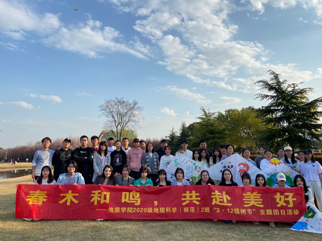 本网讯(英国365集团官网 邵宇萌 奎一鸣 彭媛媛)孟春之月,盛德在木。3月12日下午,在第44个植树节来临之际,2020级地师2班全体成员在行知楼东南侧草坪上开展了“春木和鸣,共赴美好”植树节主题团日活动。