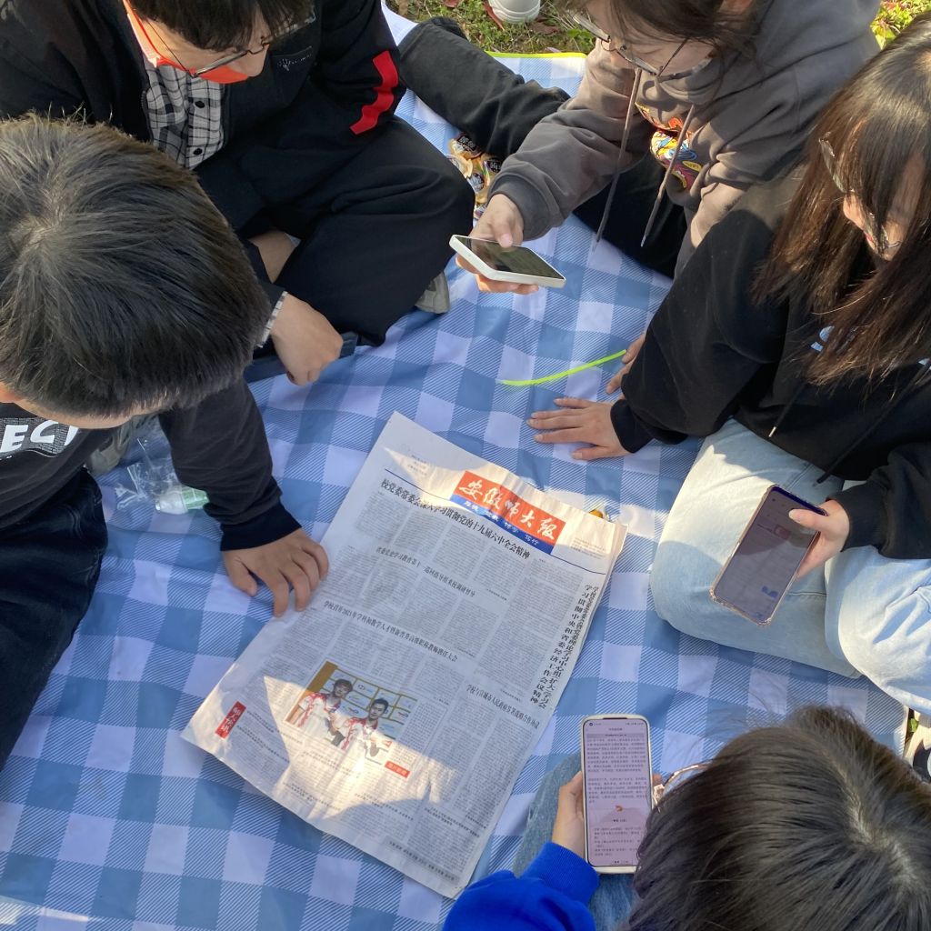 “学史明理,学史增信,学史崇德,学史力行”。下午同学们来到室外开展以“学习党的青年运动史”为主题的分享交流会。阳春之时,绿意初绽,沐浴着阳光,倚坐于草坪之上,同学们积极交流青年运动史上的重要会议、重要人物、重大事件等基本史实,总结党的青年运动史的基本结论和根本立场,分享从党的青年运动史中汲取的历史经验,并从个人角度讲述了未来如何更好地做到“永远跟党走,奋进新征程”。