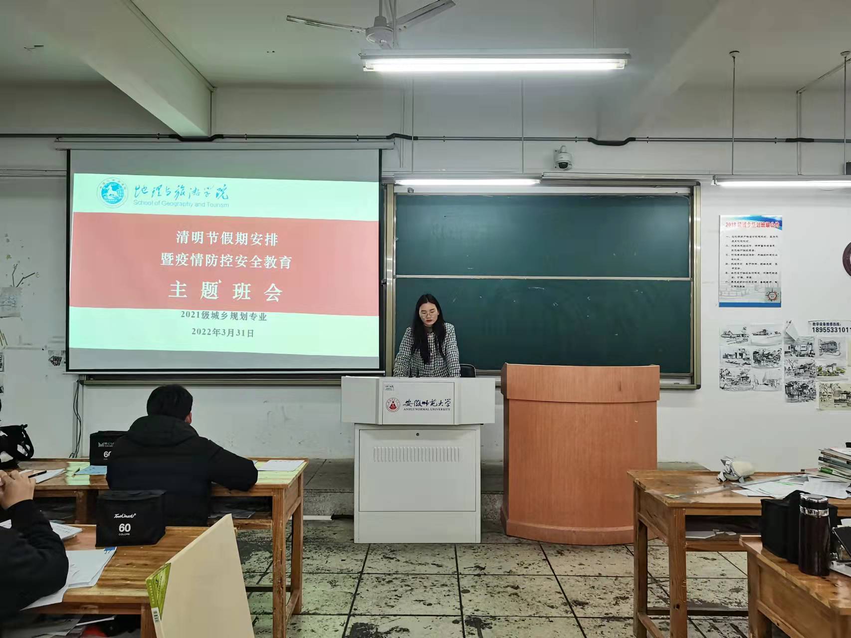 本网讯(韦银艳 张茹平)清明假期即将到来,鉴于当前疫情严峻复杂形势和员工安全教育管理需要,3月31日晚,2021级城乡规划、旅游管理专业分别在固定自习教室召开了清明节假期安排暨疫情防控安全教育主题班会。班会由辅导员韦银艳主持。