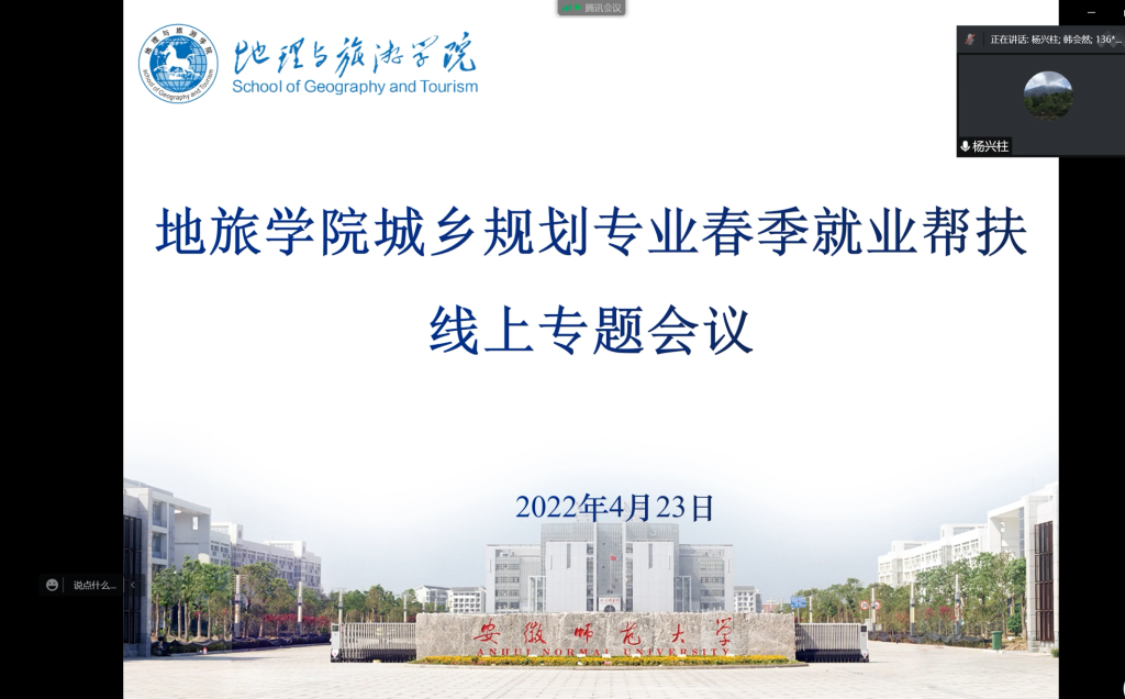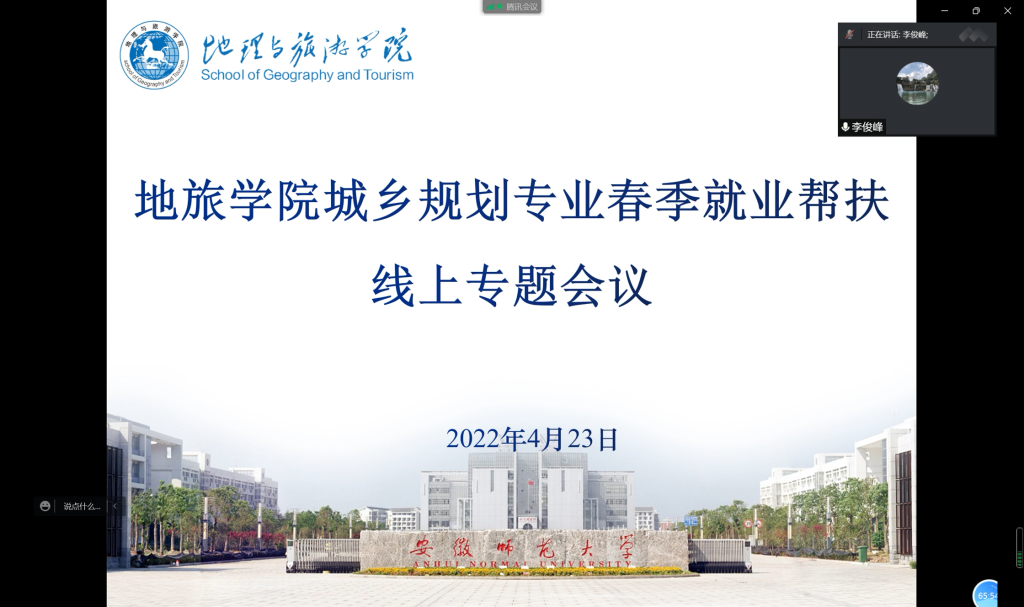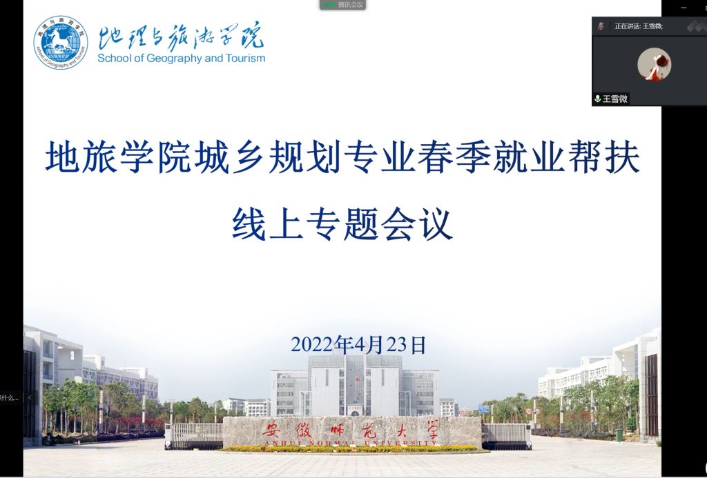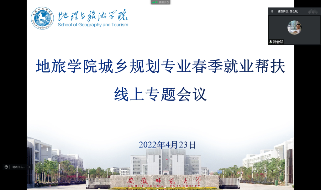 为全力推进2022届毕业生就业工作,4月23日晚19点,英国365集团官网召开城乡规划专业春季就业帮扶线上专题会议,公司党委书记贾冠忠、党委副书记乔静、副经理杨兴柱、城乡规划专业负责人韩会然、专业全体教师及辅导员张慧参加了此次会议。会议由韩会然主持。