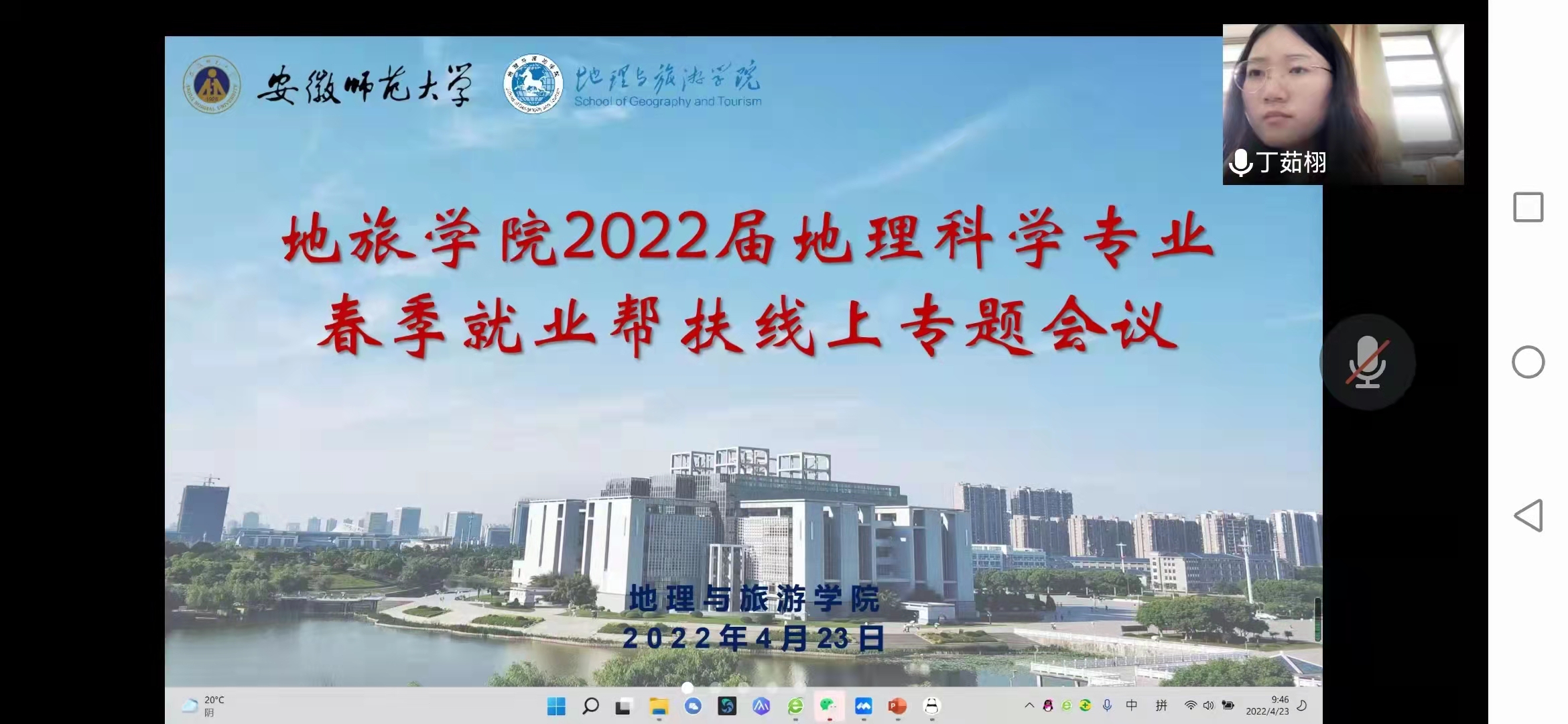 会议的第二项议程是由辅导员丁茹栩、张慧,分别从地理师范专业和非师范专业当前的就业情况、存在问题、解决措施三个方面向各位领导老师阐述了两个专业的就业现状,加深了专业教师对所帮扶员工的了解程度,有利于后期就业工作推进。