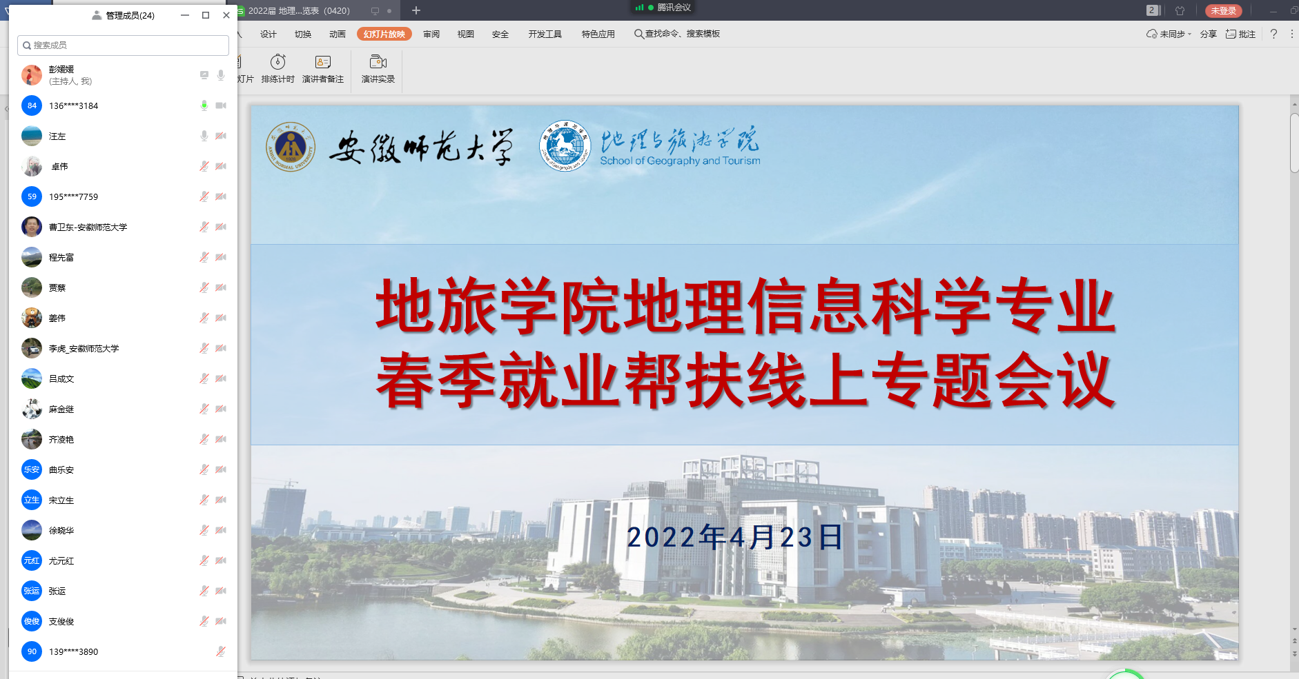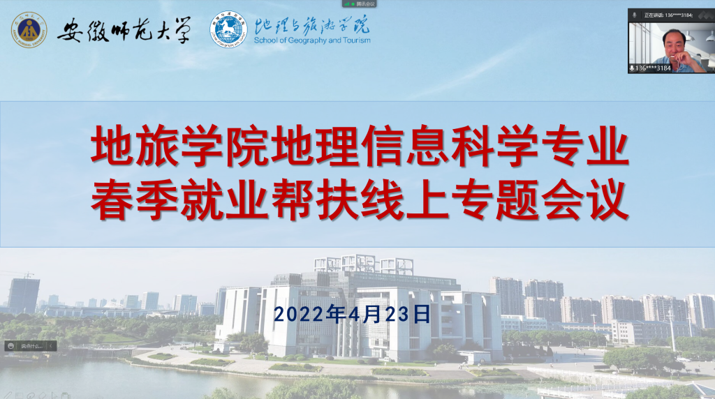 本网讯(彭媛媛)2022年4月25日下午15:00,英国365集团官网地理信息科学专业召开春季就业帮扶线上专题会议,公司党委书记贾冠忠、党委副书记乔静、副经理曹卫东、地理信息科学专业全体教师及辅导员彭媛媛参加了此次会议。会议由地理信息科学专业负责人汪左主持。