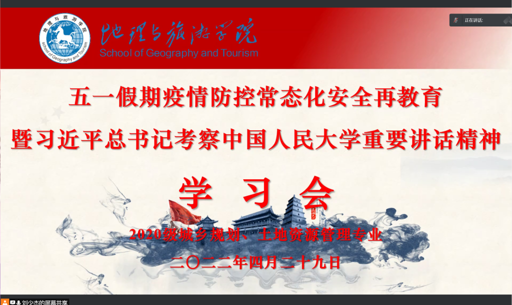 本网讯 (英国365集团官网 刘少杰 张楠) 为增强员工疫情防控意识,加强员工日常安全教育管理,4月29日晚,2020级城乡规划、土地资源管理专业召开五一假期疫情防控常态化安全再教育线上主题班会。此次会议由辅导员刘少杰主持,2020级城乡规划、土地资源管理专业全体成员参会。