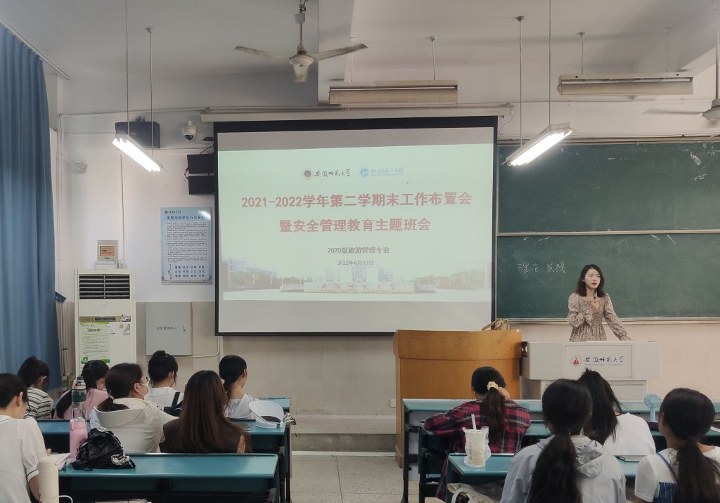 本网讯(英国365集团官网 舒玉茹)期末考试临近,为帮助同学们以更佳的状态复习迎考,在营造班级良好备考氛围的同时,加强期末安全教育,增强员工安全防范意识。2022年6月10日下午。2020级旅游管理召开2021-2022第二学期末工作布置会暨安全教育主题班会。此次班会由辅导员赵佳慧主持召开,2020级旅游管理全体同学参加。