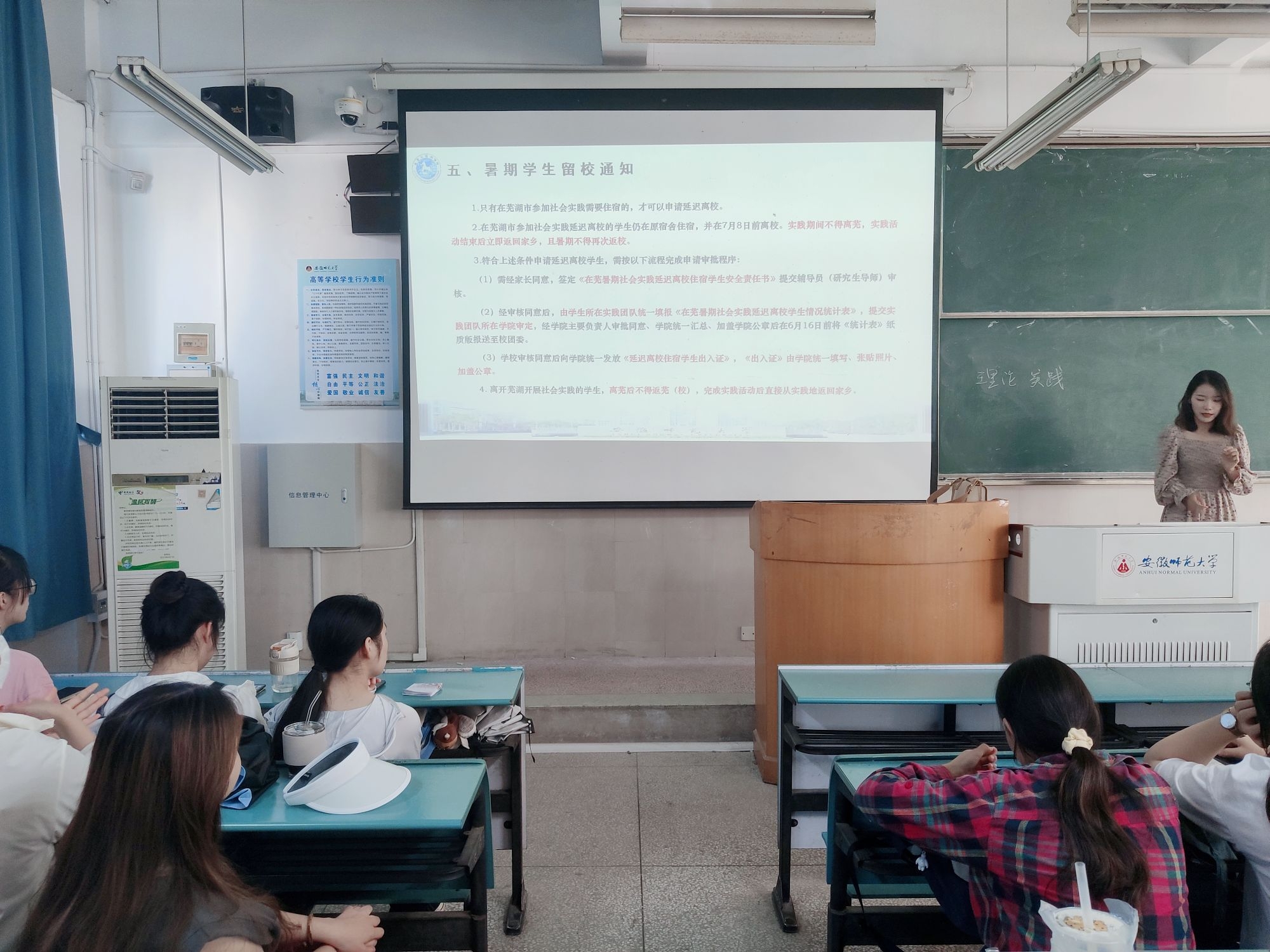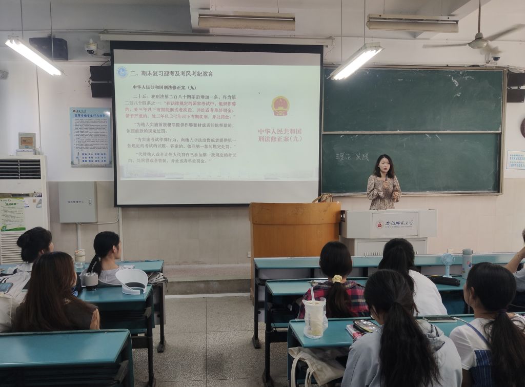此次班会主要围绕“诚信考试”和“安全教育”两大部分展开。会议伊始,赵佳慧便针对期末迎考问题进行了两方面的强调。一方面,赵佳慧提醒同学们要做到合理安排复习时间、科学规划复习节奏,积极迎考。此外,赵佳慧一再强调同学们要严守诚信考试底线,筑牢诚信考试防线。紧接着,赵佳慧从严守公司“四项禁令”切入,围绕“期末安全教育”向同学们做出多方面提醒。赵佳慧重点强调同学们要重视疫情防控安全、食品安全、寝室防火用电安全、交通安全、网络安全、防电信诈骗等,特别提醒同学们在暑期社会实践期间要注意人身财产安全,另外夏季到来,要远离危险水域,注意防溺水。最后,赵佳慧为同学们解答了暑期留校相关问题,同学们需严格遵守留校申请审批流程,同时,留校期间仍需遵守公司各项制度规定,共创文明安全的校园环境。