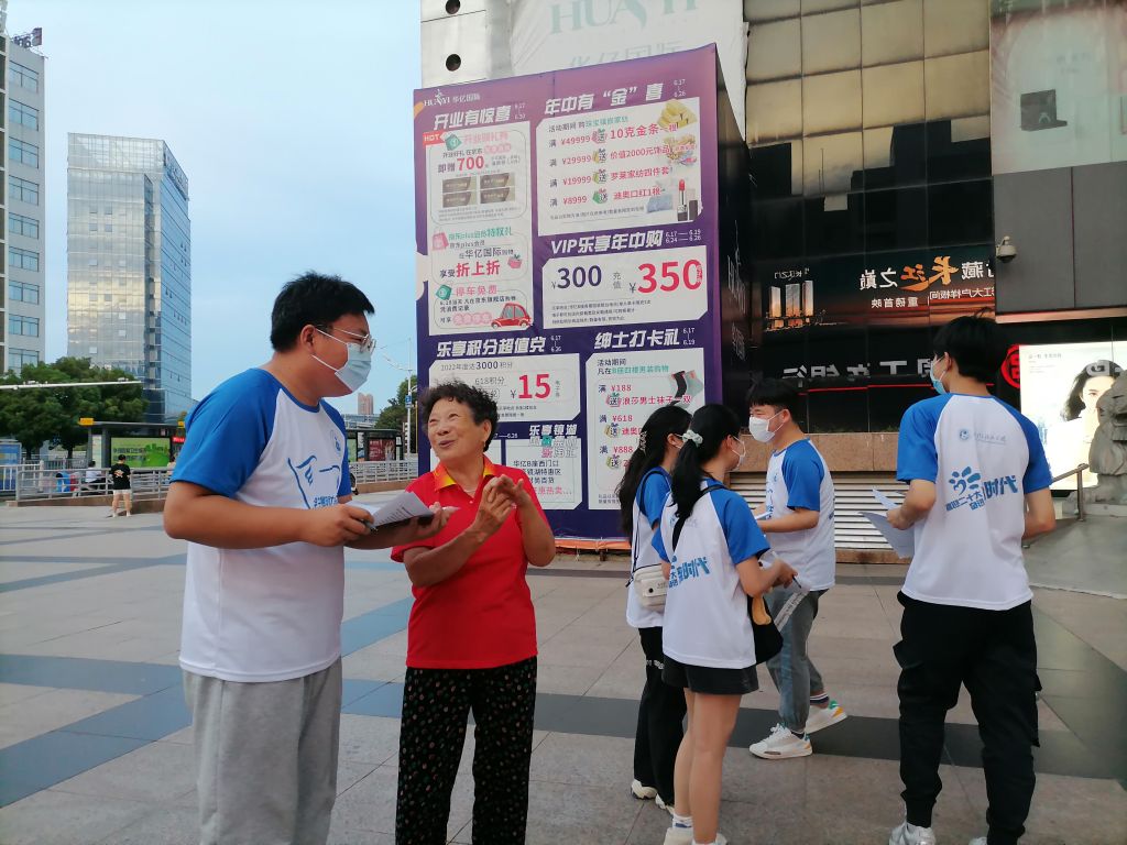 日斜西山,霞光万道。调研团队从校东门出发,乘坐轻轨1号线到达鸠兹广场站,步行至华亿广场后,该团队按原定计划向广场上的居民分发调查问卷。落日余晖之下,一群身着统一队服的青年员工在广场上穿梭,吸引了不少路人的目光。“您好,我们是英国365集团官网的员工,可以请您帮忙填一份问卷吗?”队员们真诚友善,不厌其烦地向广场上的居民询问,坚持在各个街道发放问卷。调查过程中大部分居民对本团队的调研工作表示理解与支持,并对团队成员认真负责的态度作出好评。但仍有不少男性居民表示家庭购物消费大多由妻子主管,因不了解家庭支出明细,对问卷上的部分问题无法给予回答和自己的见解。