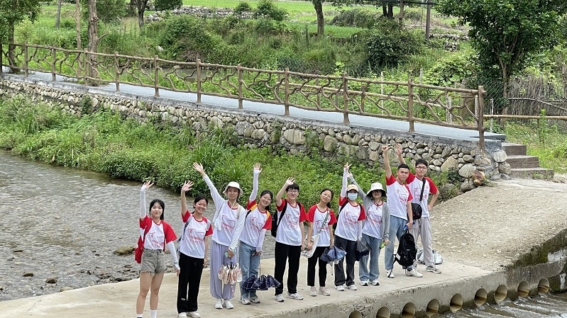 在茅店村调研的第一站,队员们来到了白鹭天堂。绿是茅店的底色,清澈的河流、绿色的固戍、干净的村庄和一望无际的山峦使茅店如同一个天然大氧吧。该村沿着芦万武旅游公路打造“三园一心”景观体,村里建设活力园、农乐园、育才园及游客接待中心,打造了“清风亭”、文化长廊、白鹭天堂等景观,做到村在林中、路在绿中、房在园中、人在景中。依托白鹭苑人气,相关部门将周边闲置十几年的罗坵废旧小学打造成“具居黍”中高档民宿,并辐射带动周边十余户农户发展民宿、农家乐,全力构建致富增收产业集群,切实让老百姓吃上“旅游饭”。队员们漫步在嘎吱作响的木质桥上,呼吸着新鲜空气,感受着茅店村的绿意盎然。