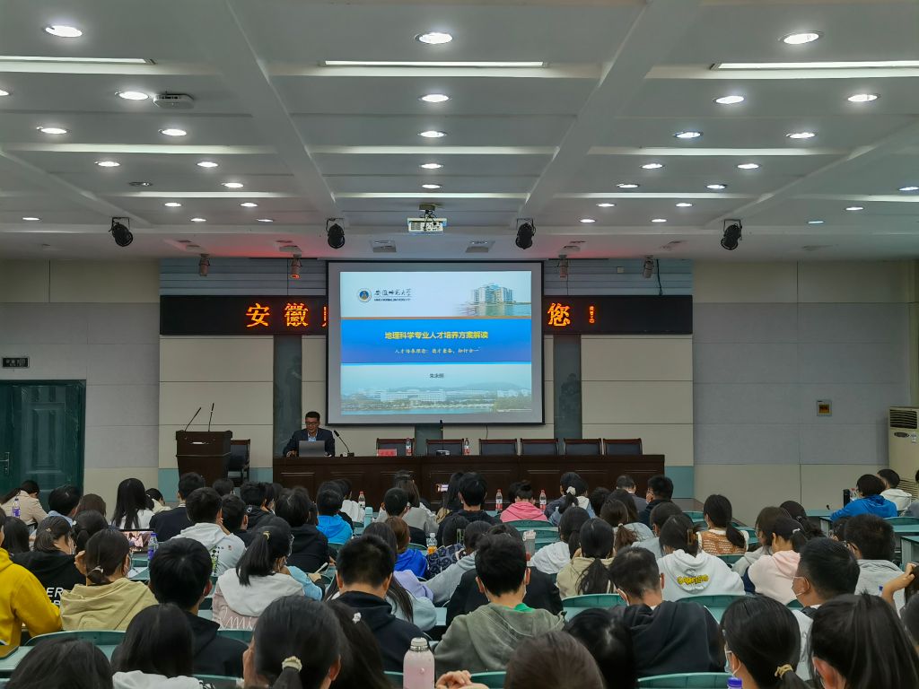 朱永恒教授向同学们详细地介绍了地理学科的人才培养方案,勉励同学们要在知识、能力、素质方面得到综合提升,时刻践行“经天纬地,弘道明理”的人文精神,向成为地理科学高质量人才的方向大步迈进。