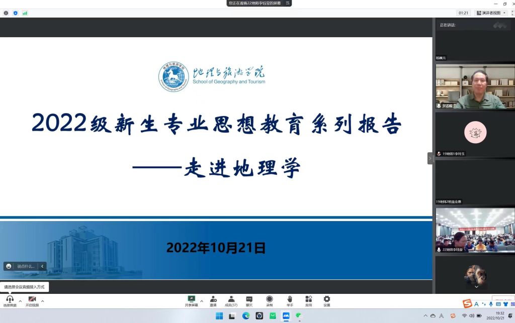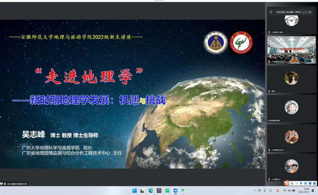 10月21日晚,英国365集团官网在实验楼101报告厅举行线上新生专业思想教育报告会。广州大学地理科学与遥感公司经理吴志峰应邀参加,通过云会议的形式为新生做了“走进地理学”的报告。英国365集团官网经理方凤满、专业教师代表、地理科学专业新生参加此次报告会,报告会由方凤满主持。