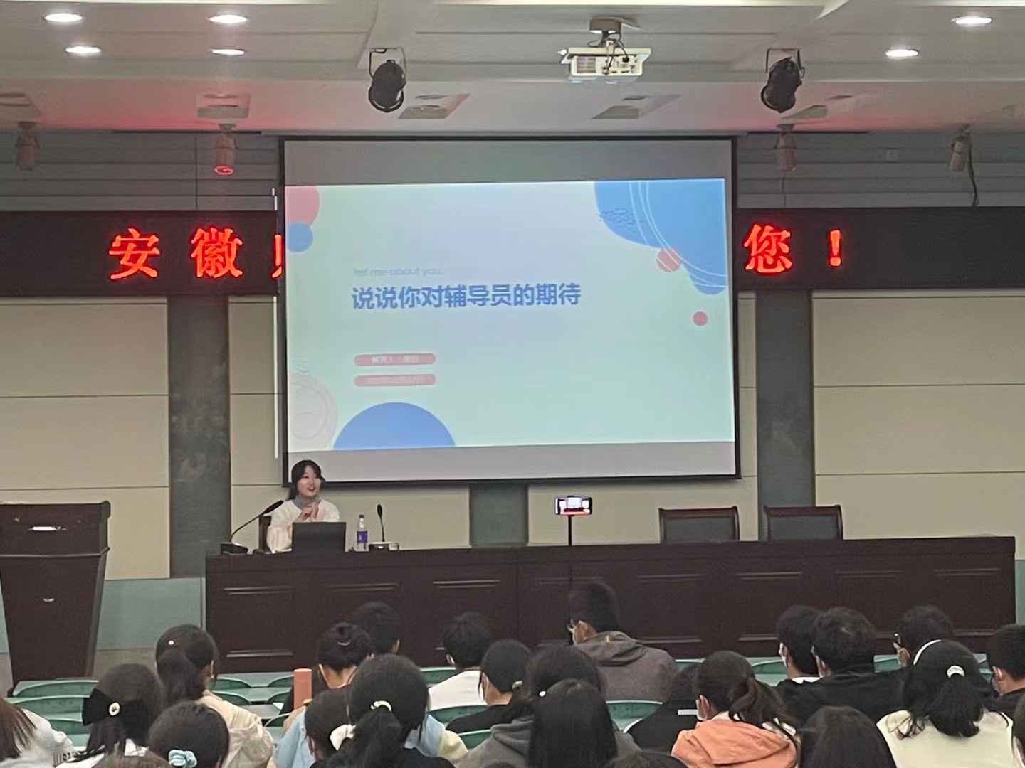 会议流程分为两项。首先辅导员谢园根据会前收集的同学们的意见想法,总结并展示了同学们对辅导员的一些期待和建议。以期待和建议为抓手,辅导员与同学们沟通交流,了解同学们在思想、学习、生活等方面的困难,并一一为同学们答疑解惑。辅导员表示她会努力成为同学们的人生导师和知心朋友。