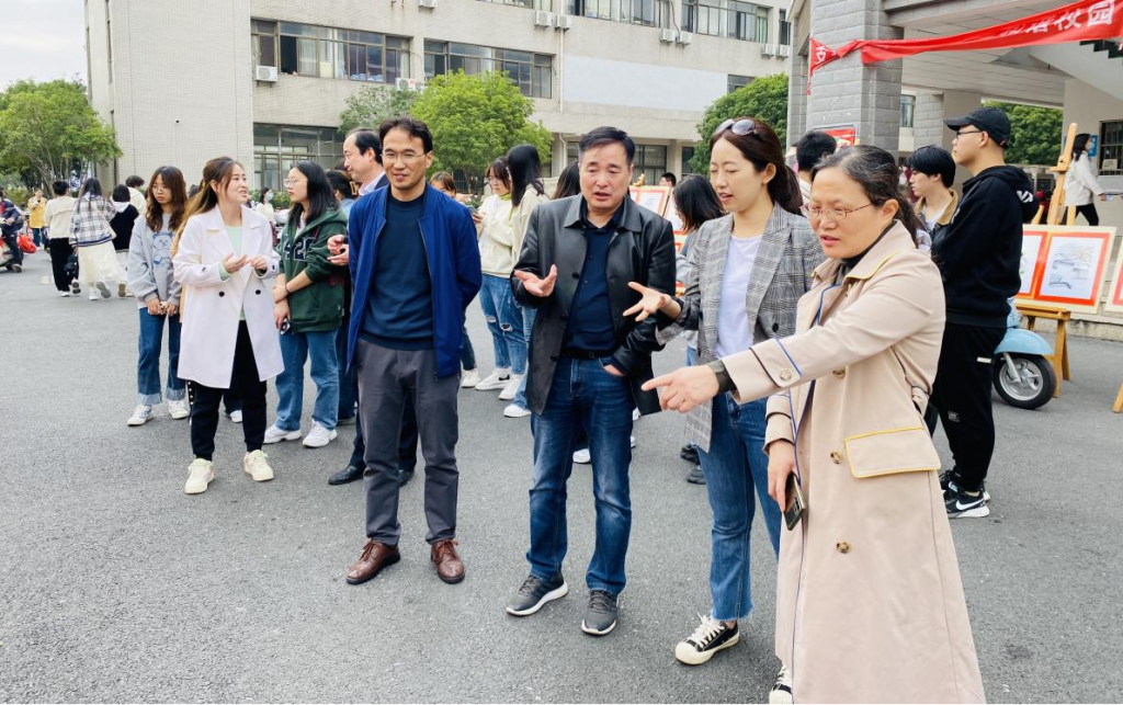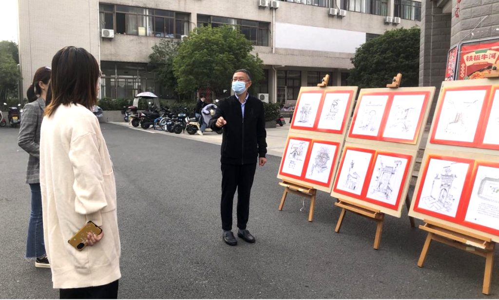 活动当天,同学们积极地向大家介绍自己的画作,宣传城规的写生风采。贾冠忠在参观过一幅幅画作后,高度肯定了同学们的专业技术水平,同时指出,身为城乡规划的一名员工,其作品需结合人文素养、具有文化底蕴,告诫同学们多读书、了解历史,响应党的号召,积极学习党的二十大重要精神,将奋斗目标融于专业领域。乔静指出,城乡规划专业的皖南写生是英国365集团官网的一项特色活动,其成果不应只是简单地展出宣传,要激发同学们的热情,将专业课程结合到素质拓展之中,通过理论教学与实践教学相结合,完善活动体系,丰富校园生活。