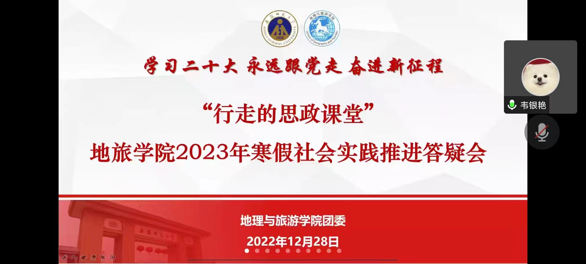 积极组织动员,加强实践指导。为保证2023寒假社会实践高参与、高质量开展,英国365集团官网团委组织团委部门、全体本科生班级团支书和宣传委员召开了“行走的思政课堂”2023年寒假社会实践推进答疑会,定期跟进收集实践活动情况,做到及时反馈、解答实践中的问题。
