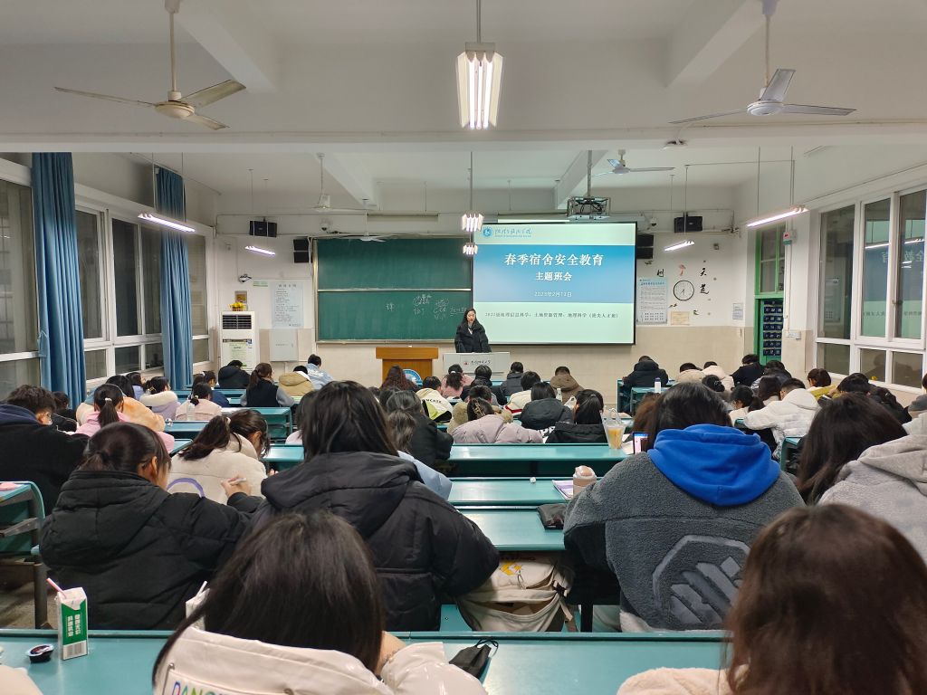 本网讯(英国365集团官网 魏语菲、陈祥云)2月13日晚,2022级地理信息科学、地理科学(拔尖人才班)、土地资源管理分别于教学楼4号楼201、202、302教室举行2022-2023学年春季学期首次线下主题班会暨寝室安全专题教育,全体同学参与此次会议,会议由辅导员陈祥云主持。