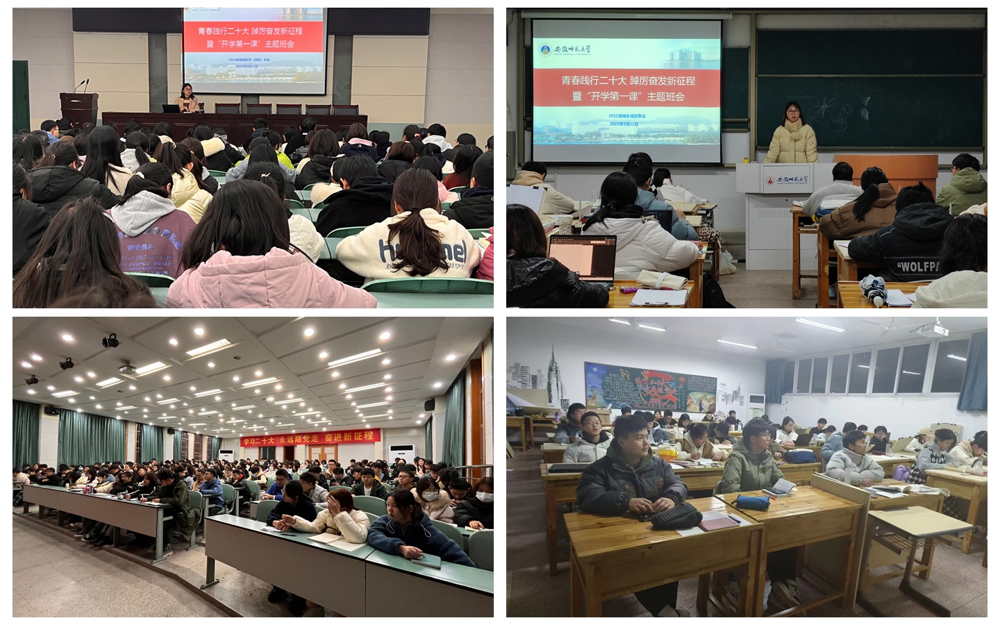 为深入学习宣传贯彻党的二十大精神,引导员工立志做有理想、敢担当、能吃苦、肯奋斗的新时代好青年,2月21日、2月23日,2022级地理科学(师范)、2022级城乡规划专业分别组织召开青春践行二十大 踔厉奋发新征程暨“开学第一课”主题班会,会议由辅导员操晶晶主持。