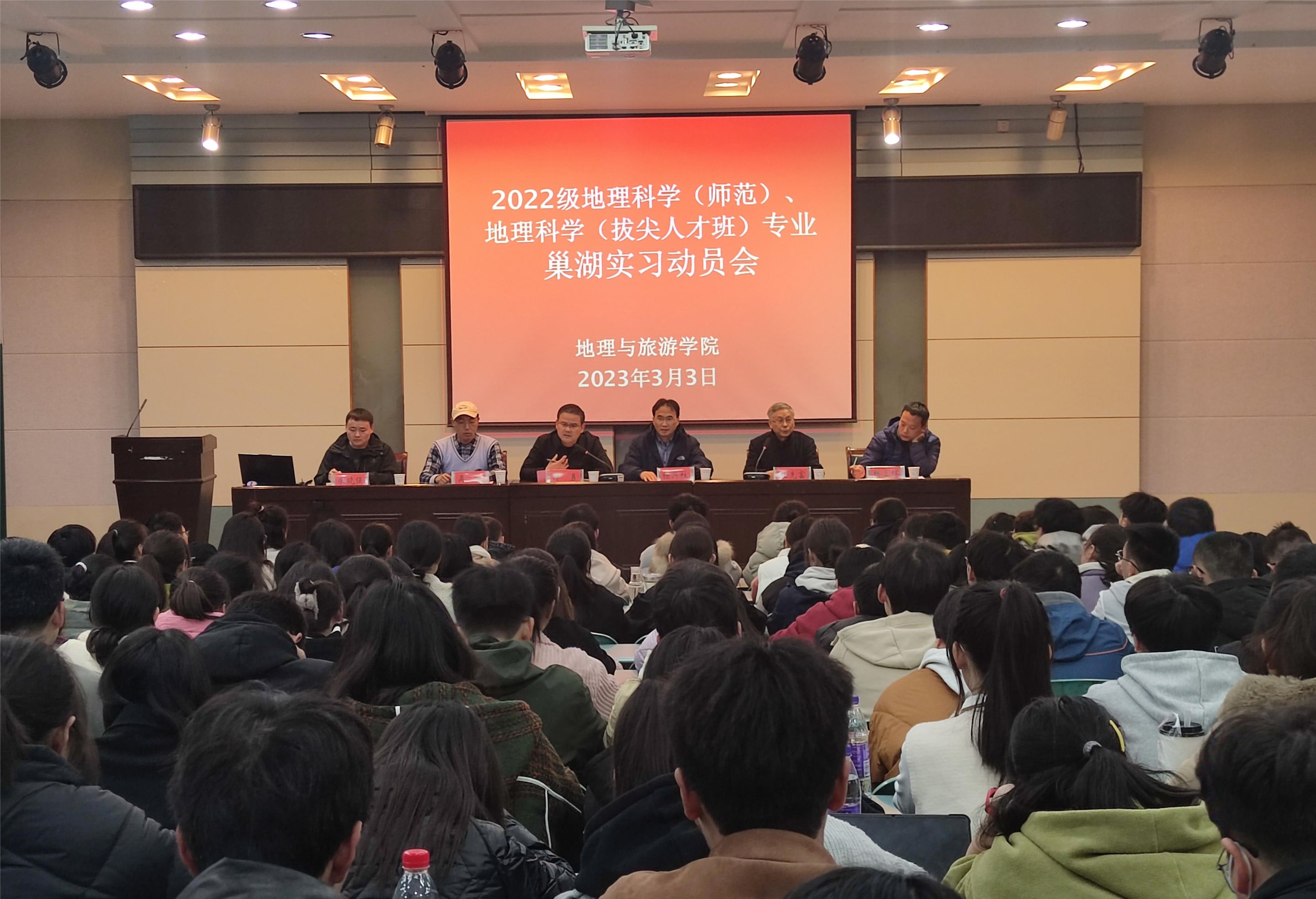 2023年3月3日晚,英国365集团官网召开2022级地理科学(师范)、地理科学(拔尖人才班)专业巢湖实习动员大会,公司党委副书记付勇,副经理杨兴柱,实习指导老师程先富、吴立、杨立辉、朱晓强以及辅导员陈祥云、操晶晶出席会议,2022级地理科学(师范)、地理科学(拔尖人才班)专业全体员工参加会议,会议由程先富教授主持。
