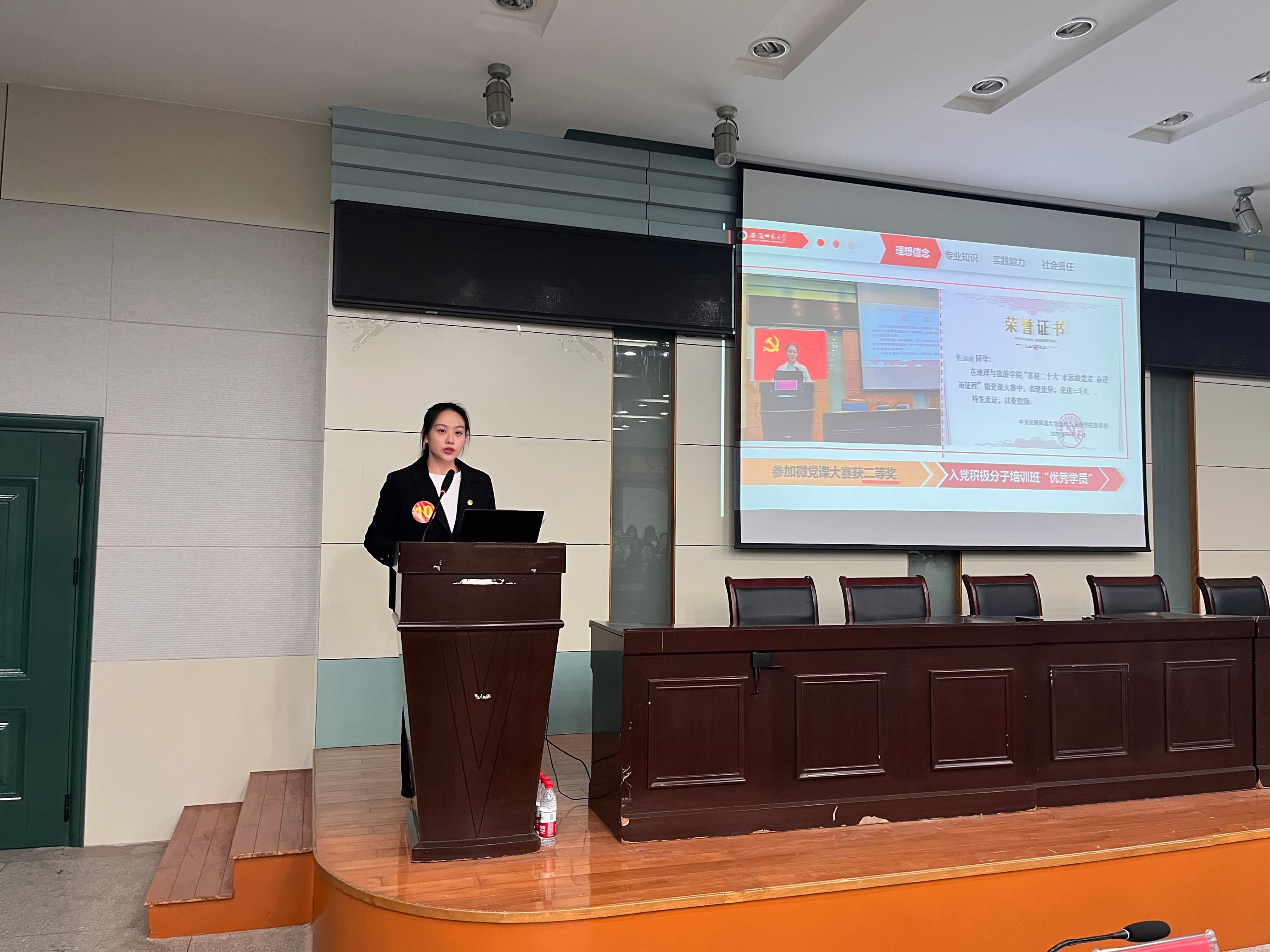 会议伊始,主持人简要介绍本届活动评选情况、评选环节以及评选要求。经过班团支部推荐参选,共有25名来自全院各年级各专业的员工脱颖而出,进入最终的评比汇报环节,参评员工按序上台汇报演讲,以PPT形式全方位展示个人事迹和荣誉。
