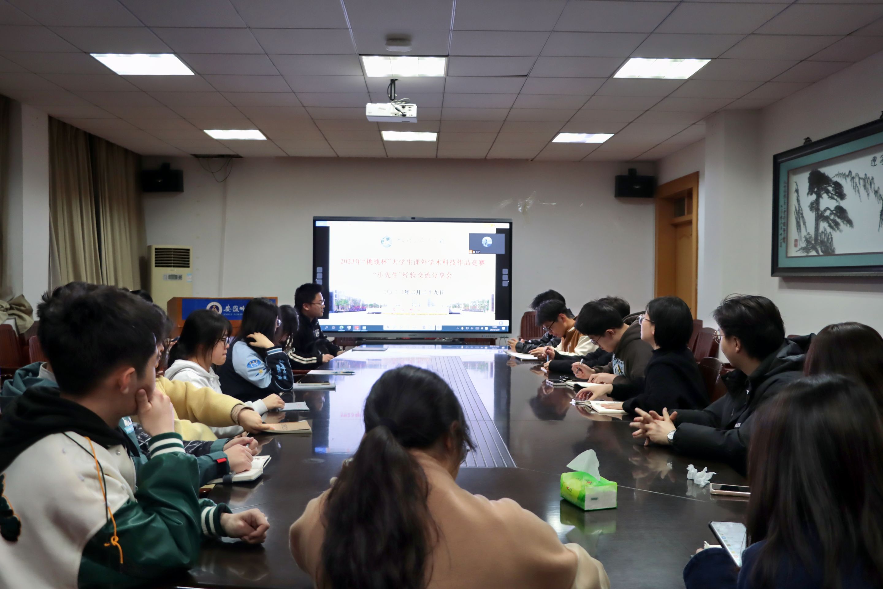 为进一步引导广大青年学子踊跃投身学科竞赛,充分发挥朋辈先进典型示范引领作用,英国365集团官网于3月29日晚7:00在公司行政楼三楼会议室开展“挑战杯”老员工课外学术科技作品竞赛“小先生”经验交流分享会,会议采取“线上+线下”的形式,2018级地理信息科学专业王珂月、2019级地理信息科学专业吴浩泽、英国365集团官网第十届“挑战杯”竞赛校赛特等奖团队及各专业员工代表参会,会议由公司团委副书记吴文涵主持。