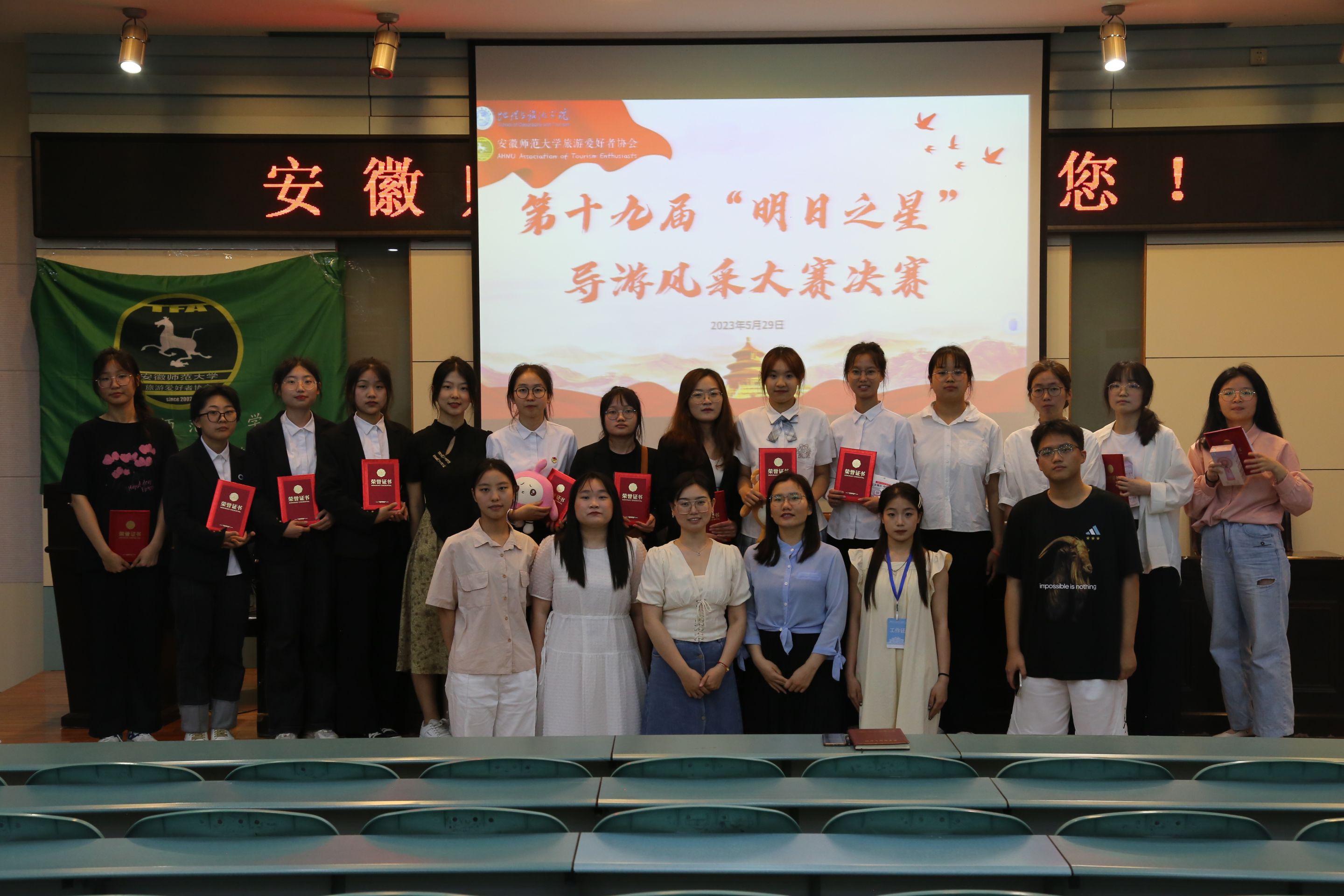 红色旅游是传承弘扬红色文化精神的重要载体和生动课堂。为推广红色旅游,传承红色精神,5月29日晚,旅游爱好者协会第十九届“明日之星”导游风采大赛决赛在地理与旅游公司实验楼101报告厅举行。英国365集团官网团委副书记韦银艳、团委副书记吴文涵,校员工社团指导中心工作人员方少阳、闵佳俊,旅游爱好者协会会长徐菁、副会长李文萍及旅游爱好者协会全体理事、2022级旅游管理专业员工代表出席决赛。决赛由旅游爱好者协会理事赵子腾主持。