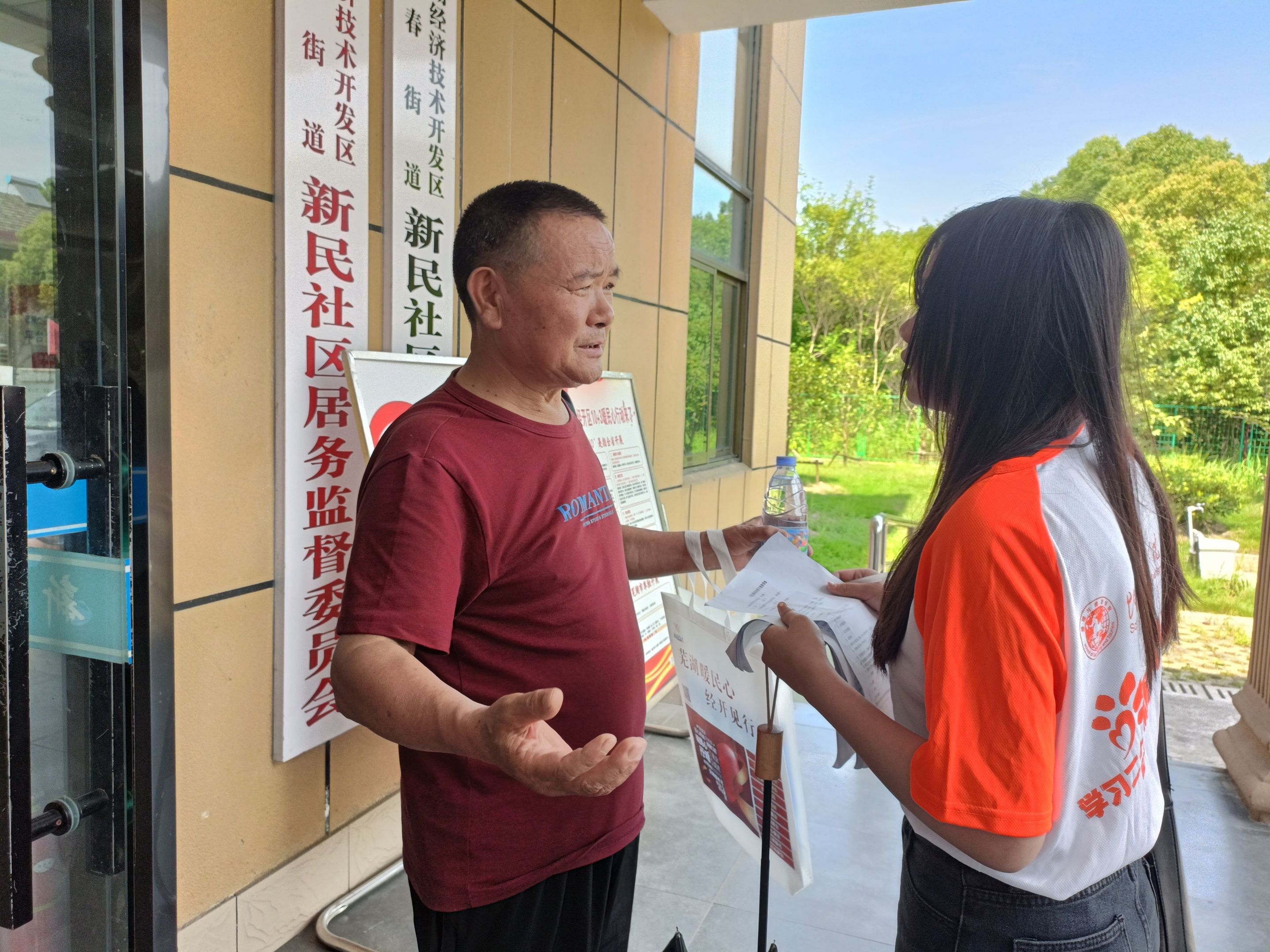 本次社会实践活动选择位于经开区万春街道东南部的新民社区。新民社区总面积约3.54km,耕地面积1840亩,全村共有19个居民组,总人口3100余人,党员66人,拆迁户数112户,主要生产方式为传统农业种植,社区耕地主要种植水稻,小麦等作物。团队成员在上午到达后,主要通过问卷调查的方式对当地住户开展实地走访与民意调研工作。