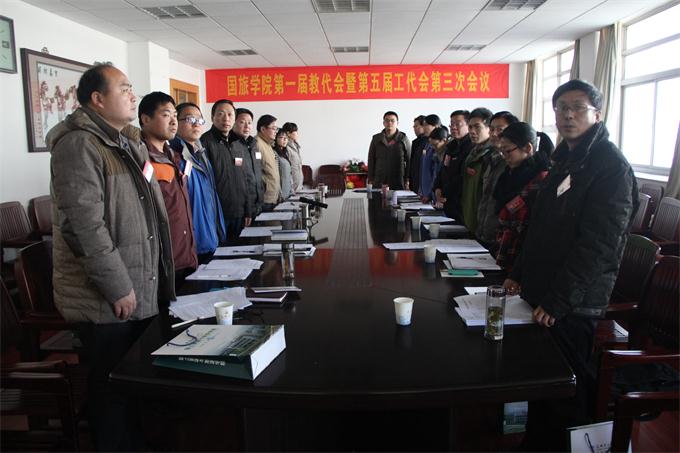 12月30日下午,国土资源与旅游公司第一届教代会暨第五届工代会第三次会议在院三楼会议室隆重召开,经理焦华富代表公司作工作报告,公司党委书记吴春雷主持大会开幕式。公司领导班子成员、教代会代表共23人参加会议。