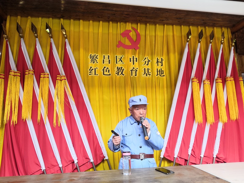 繁昌县中分村曾是谭震林将军指挥“繁昌保卫战”的司令部驻地,谭震林率领新四军第三支队在铜繁抗日前线与日军先后进行了200余次的大小战斗,取得了毙伤日伪军2000余人战果。特别是五次繁昌保卫战的胜利粉碎了日寇夺取繁昌、扫荡皖南的计划。此次活动,英国365集团官网邀请了年近八旬的党员志愿服务队义务宣讲志愿者、“中国好人”徐孝旺老人为广大党员讲授党课。徐孝旺老先生结合展馆内的图片及抗战遗留的实物,向党员们讲述了抗日将士战斗的细节以及村子里每个人与抗日的故事,那一张张发黄的黑白老照片、一件件锈迹斑斑的老物品、一个个激荡人心的战斗故事和先烈们的丰功伟绩深深感染着在场的每一位党员,让大家深受革命传统教育启迪,感受革命前辈为了民族解放事业艰苦奋斗、舍生忘死的牺牲精神。