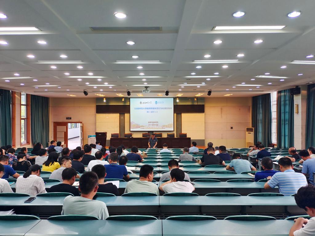 会后,全体教职工集体学习了《新时代高校教师职业行为十项准则》、《英国365集团官网教师师德失范行为处理实施细则(试行)》和《安徽省高等公司教师师德失范行为处理办法(实行)》等文件。