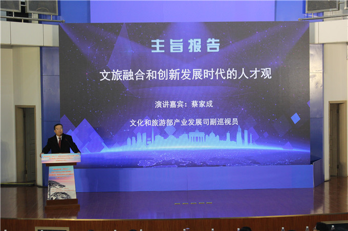 蔡家成以《文旅融合和创新发展时代的人才观》为题作主旨报告。他首先介绍了国家文化和旅游部的机构概况和职能安排,列举文旅融合从“人融”、“事融”到“心融”的一系列措施,并强调文旅融合是大势所趋,要通过文化增加旅游内涵,提升旅游品味,寓教旅游;通过旅游弘扬与传承中华文化,做到“以文促旅,以旅彰文”。他还指出新时代文化和旅游行业的人才应当具备务实、创新、学习、交流四个能力。胡善风以《文旅融合背景下旅游专业教育的改革探索》为题,介绍了文旅融合的时代背景以及文旅融合的人才需求,并以黄山公司为例,阐述了专业教育的改革探索,提到黄山公司“以文为本”、“以旅为核”、“以融为导”、“以创为力”的特色教育。刘万松以《旅游景区管理与实践》为题做了报告,从概念、技术、实践和人才需求四个方面入手,详尽介绍了景区管理的现状,提出对于高素质人才的要求。