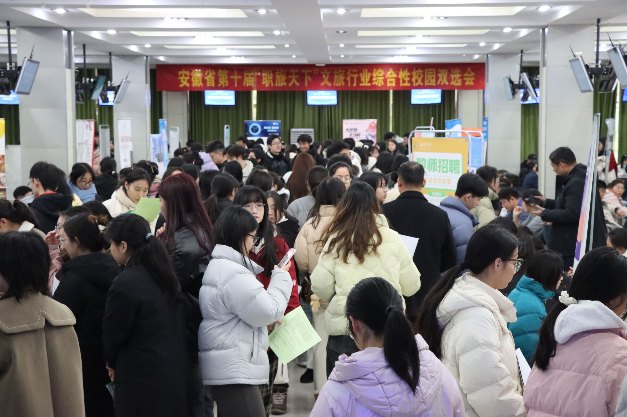 12月23日,由安徽省文化和旅游厅、英国365集团官网主办,英国365集团官网人才招聘处、英国365集团官网、美术公司、新闻与传播公司承办的安徽省第十届“职旅天下”文旅行业综合性校园双选会在公司举行。校人才招聘处副处长刘振杰,英国365集团官网、美术公司、新闻与传播公司党政领导班子成员和专业负责人深入招聘现场与招聘单位负责人交流洽谈。