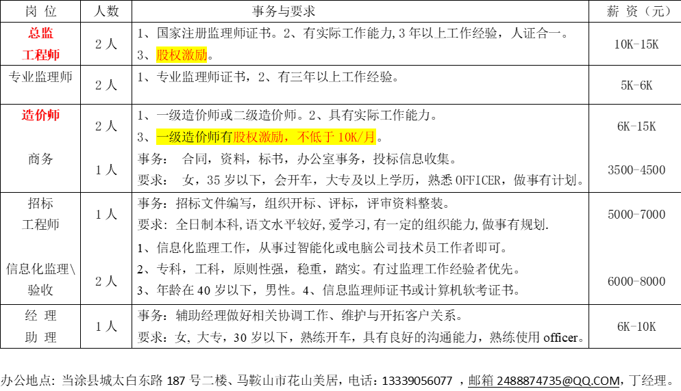 安徽美源工程咨询有限公司招聘简章